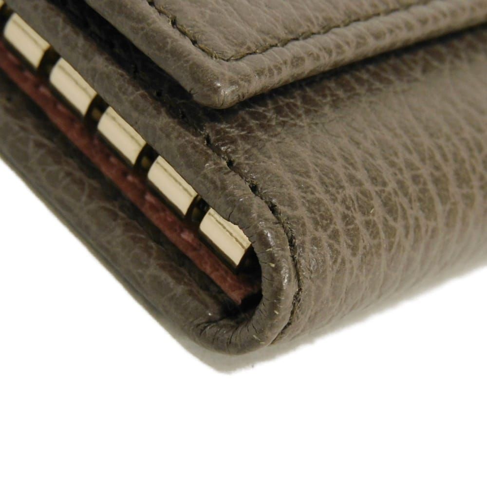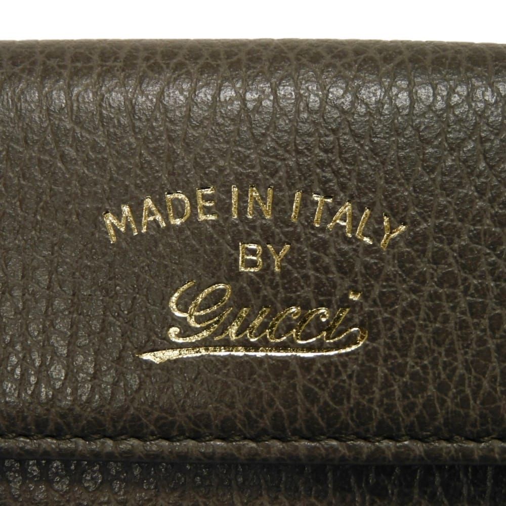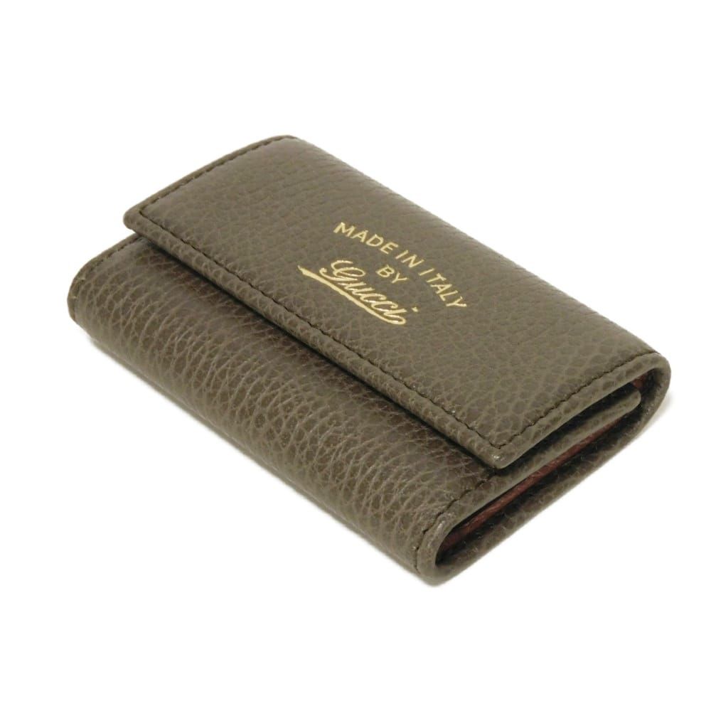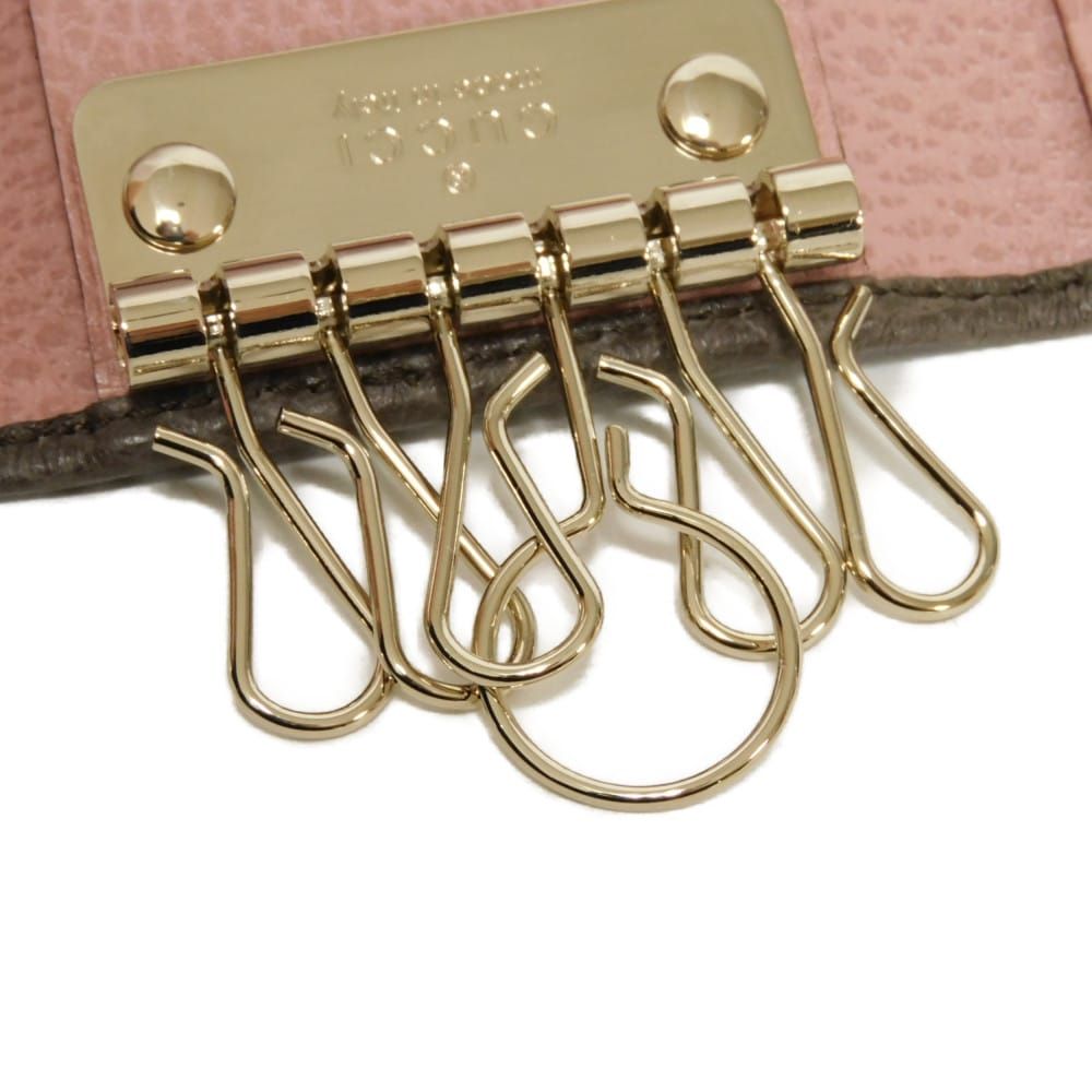 グッチの筆記体ロゴが箔押しされた、型押しカーフレザーにライニングカラーを組み合わせた「」スナップ式6連キーケースです。