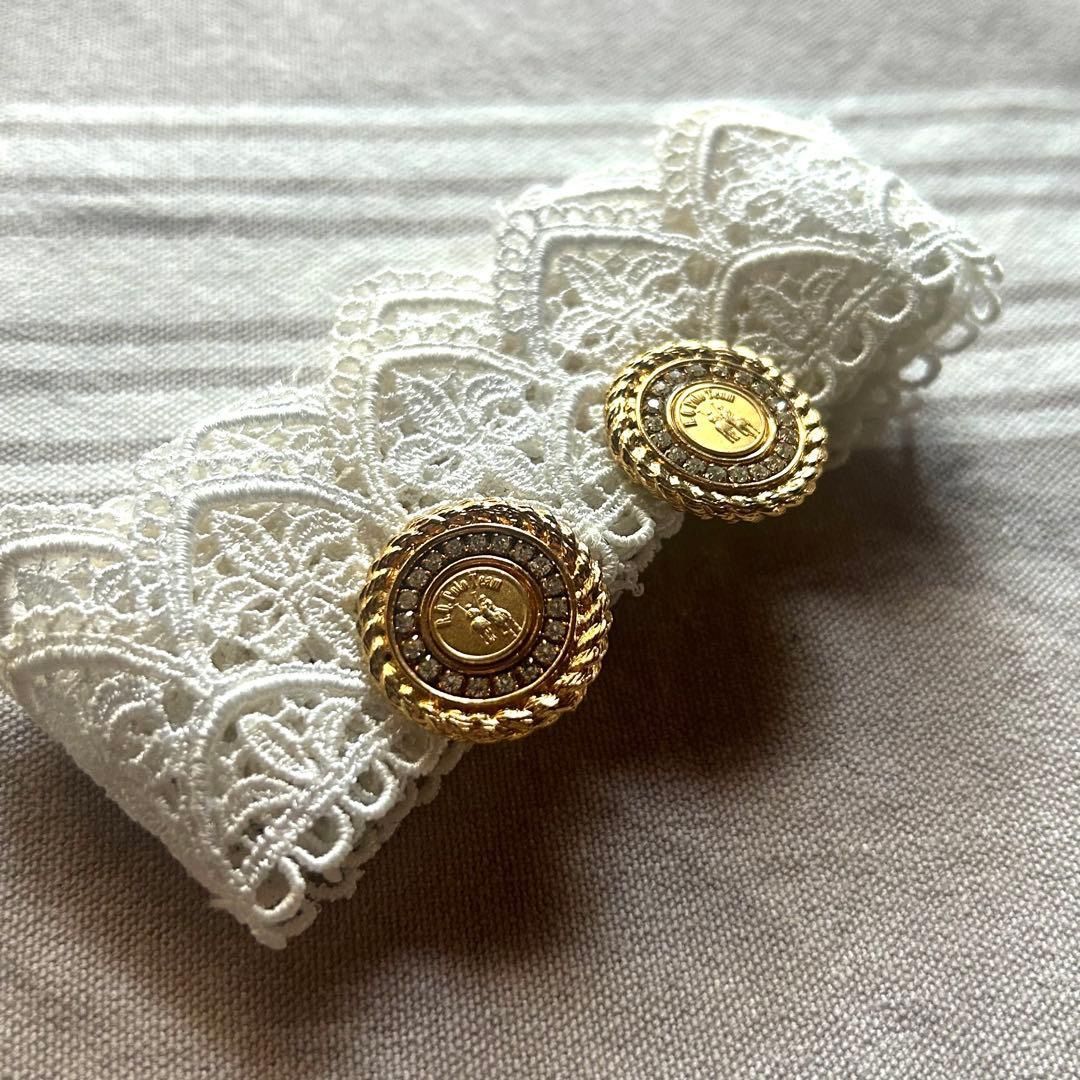 R.Q.poloteamとは選ばれた最強メンバーによる女王への忠誠と名誉をかけて戦うポロチームのこと。そのモチーフを真ん中にビジューが取り囲んだ華やかなビンテージイヤリングです。