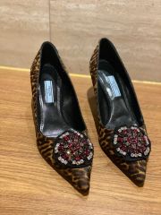 シックなブラックカラーはどんなコーディネートにも合わせやすく、カジュアルなスタイルからモードな装いまで幅広く活躍します。プラダならではの高品質な素材使いと計算されたフォルムが、足元に上品なアクセントを加えます。