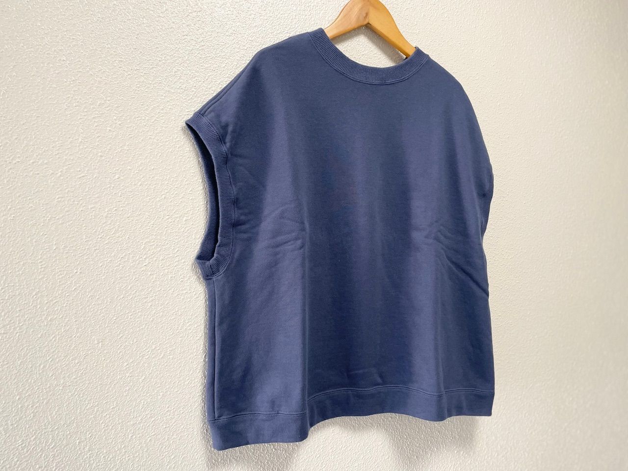 ゆったりと肩を覆う形のベストは