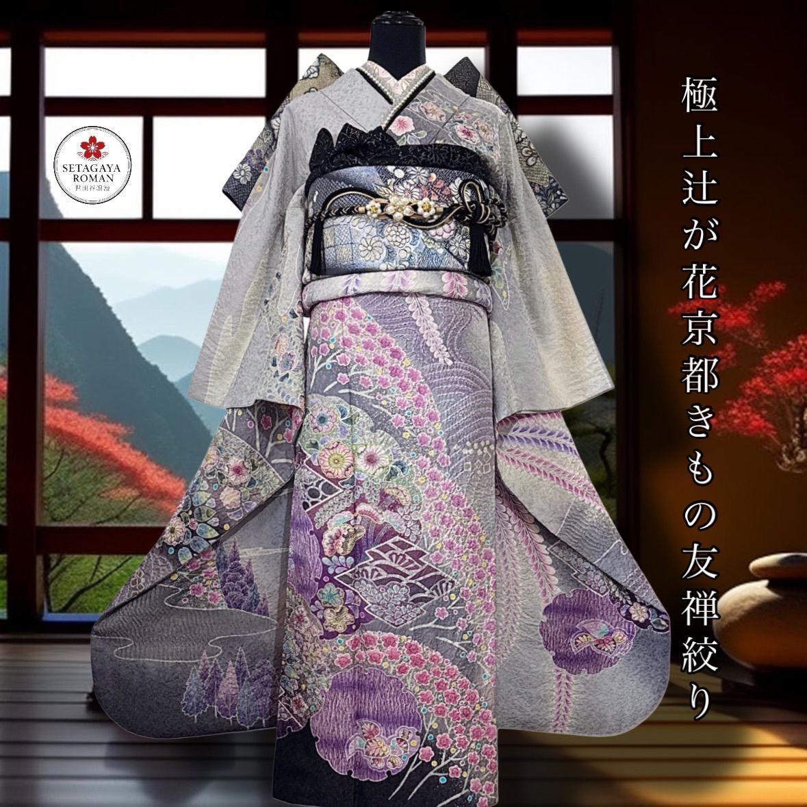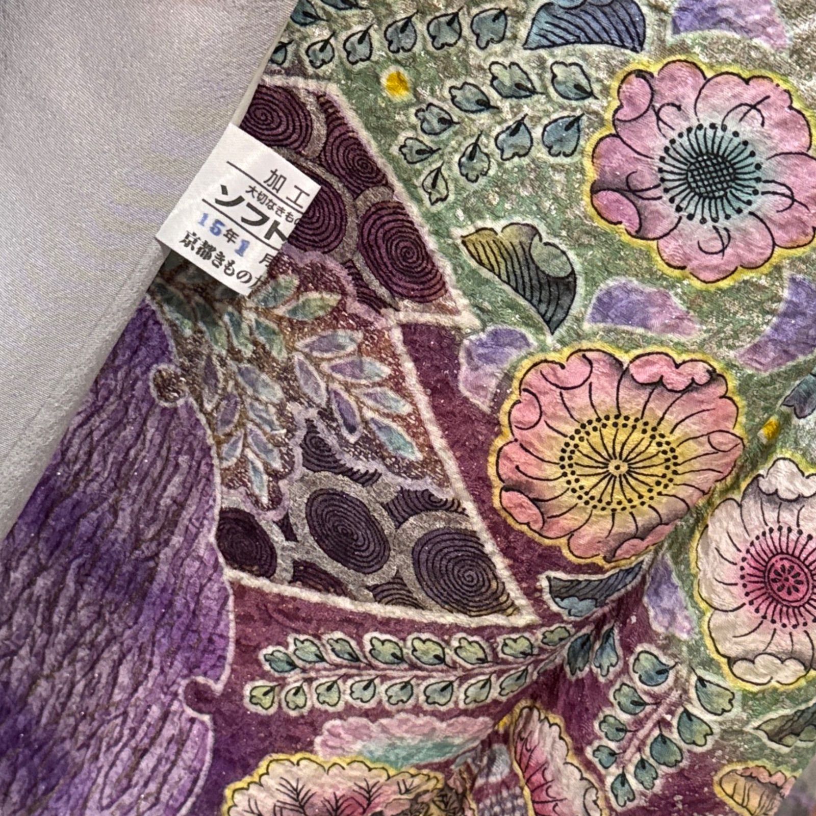 銀通し地に高級絞り染め・暈し染・雪輪・共八掛・金銀彩・箔加工を施した正絹仕立ての逸品で、京都きもの友禅扱い・ガード加工済みのため、状態も非常に良好です。