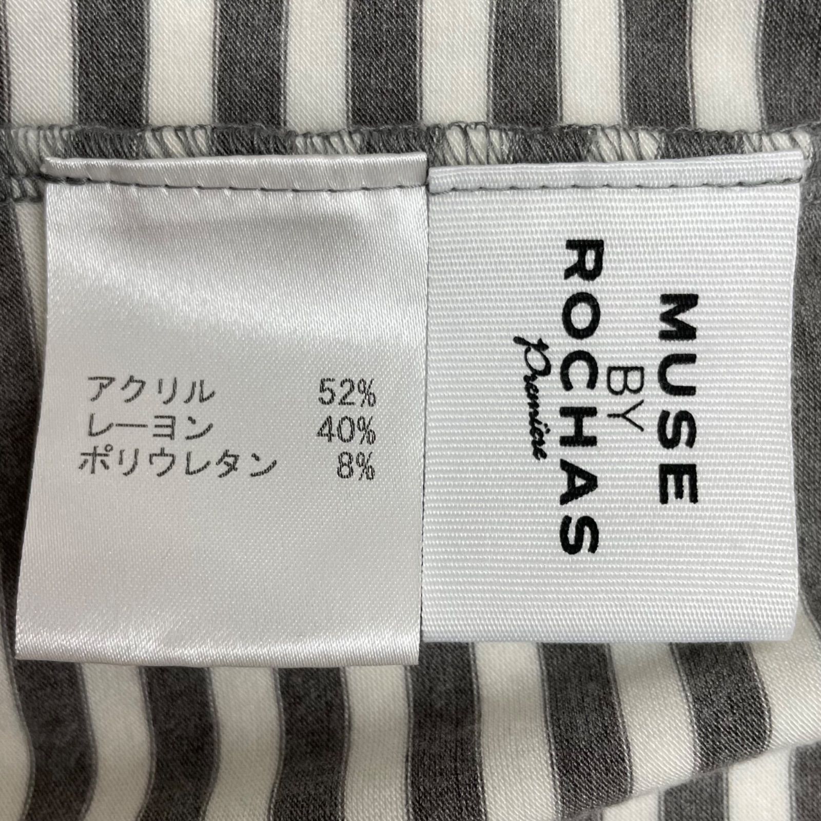 MUSE BY ROCHAS premiere ボーダーカットソー トップス ボーダー柄 Leilian レリアン グレー ホワイト 灰色 白 サイズ13+ レディース 秋 冬 ゴーゴー古着マルイファミリー溝口店 2 No.389