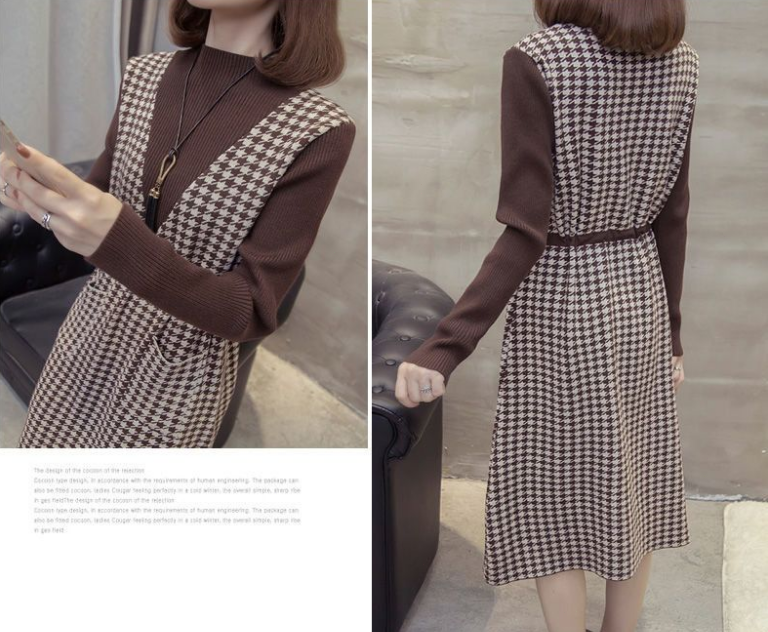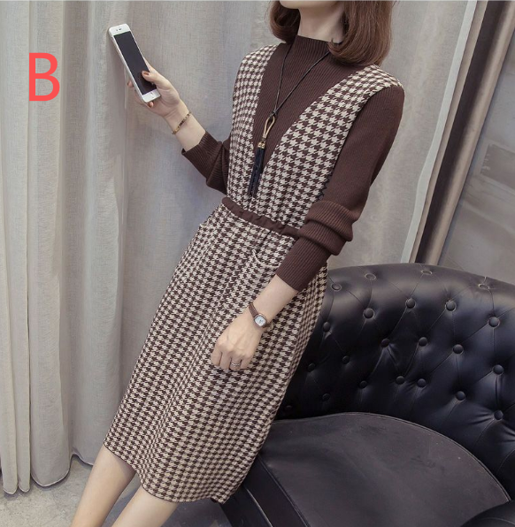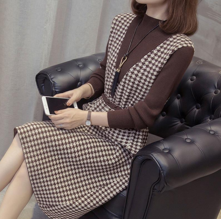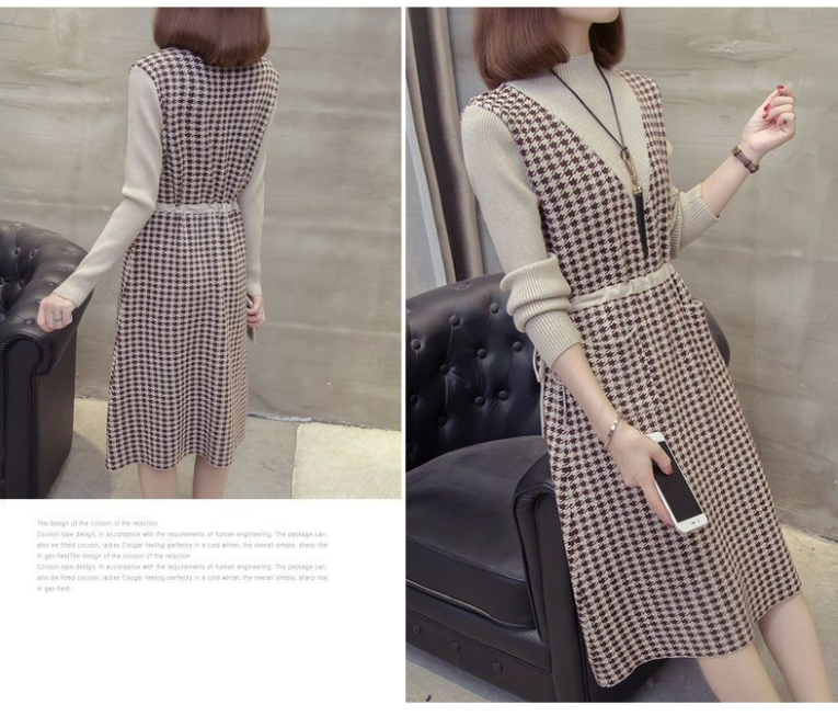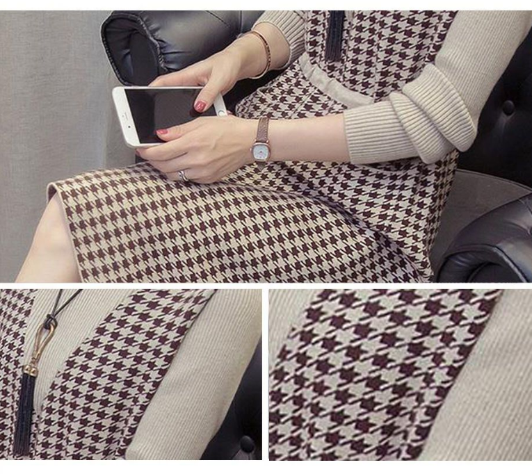 連携キーワード:ニットワンピース レディース 40代 秋冬 膝丈ワンピース 長袖 ニットワンピース チェック柄セーター ロングスカート オシャレ大人カジュアル