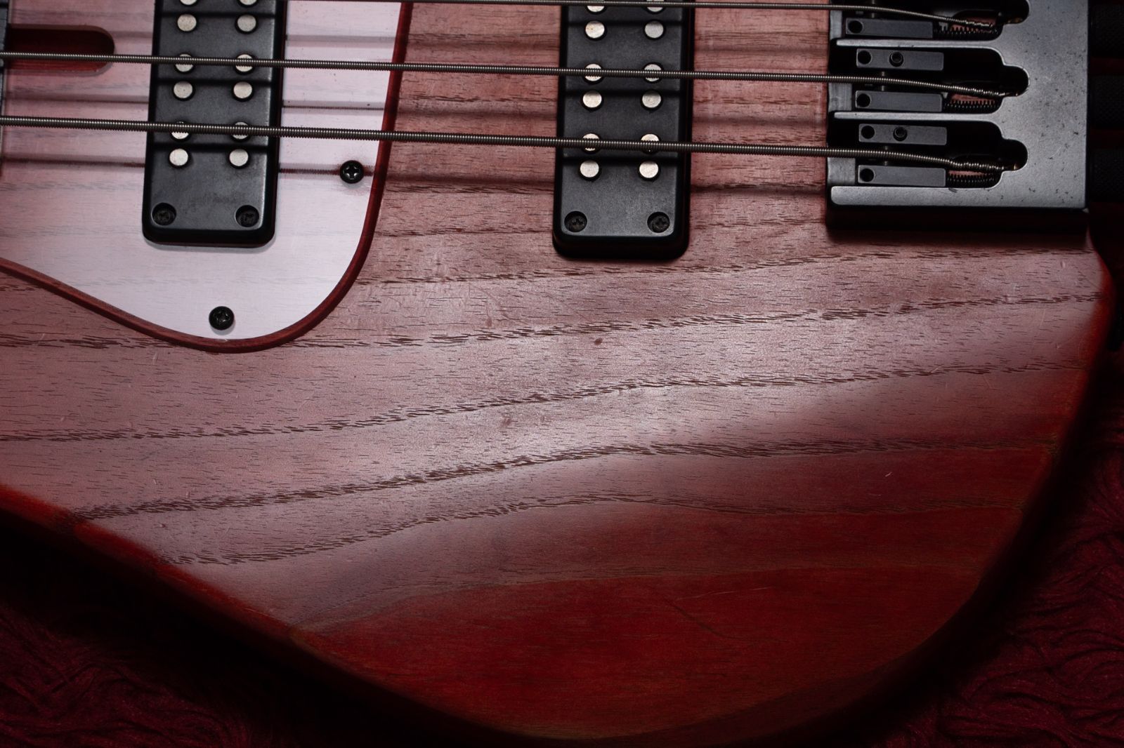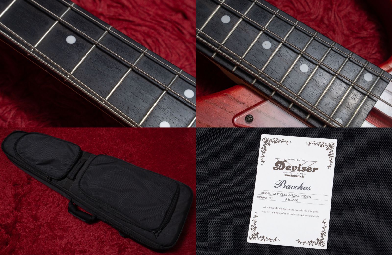 ピックアップはオリジナル、プリアンプはAguilar OBP-2、ブリッジなどのヘッドレス用のハードウェアはHIPSHOTといずれも高品位です。