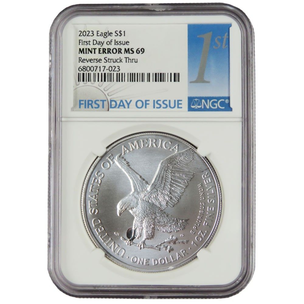 2023年 1ドル アメリカン シルバー イーグル NGC MS69 FDI ミント エラー リバース ストラック スルー2023 $1 American Silver Eagle NGC MS69 FDI Mint Error Reverse Struck Thru
