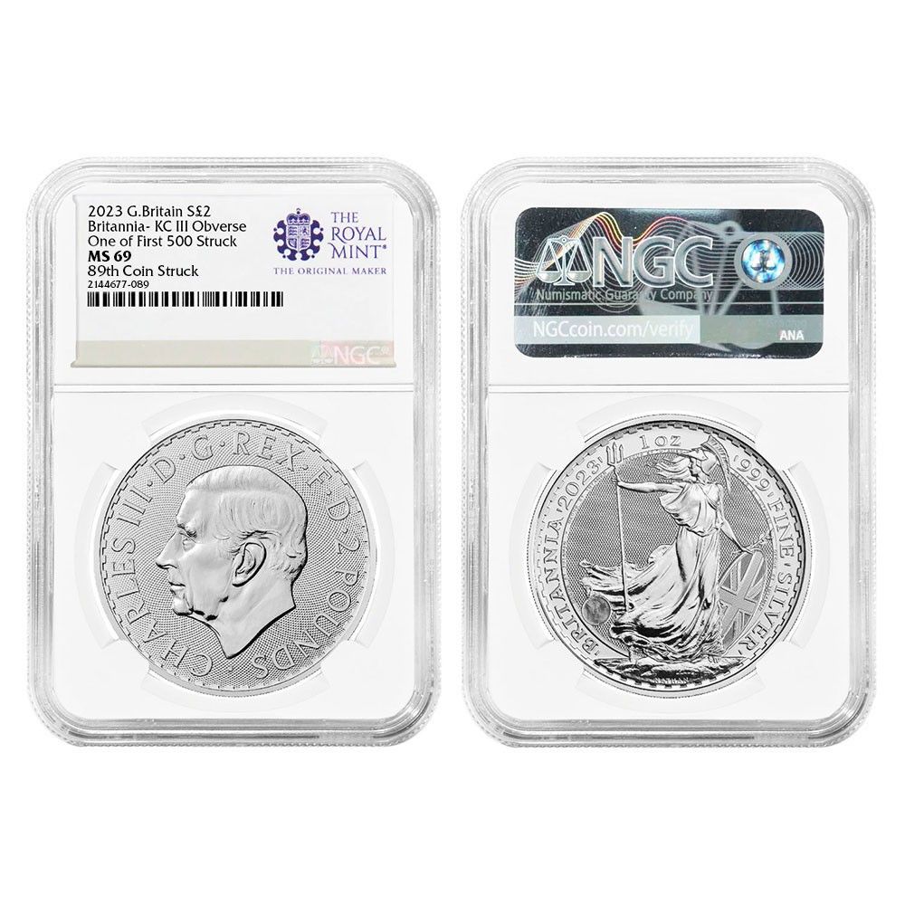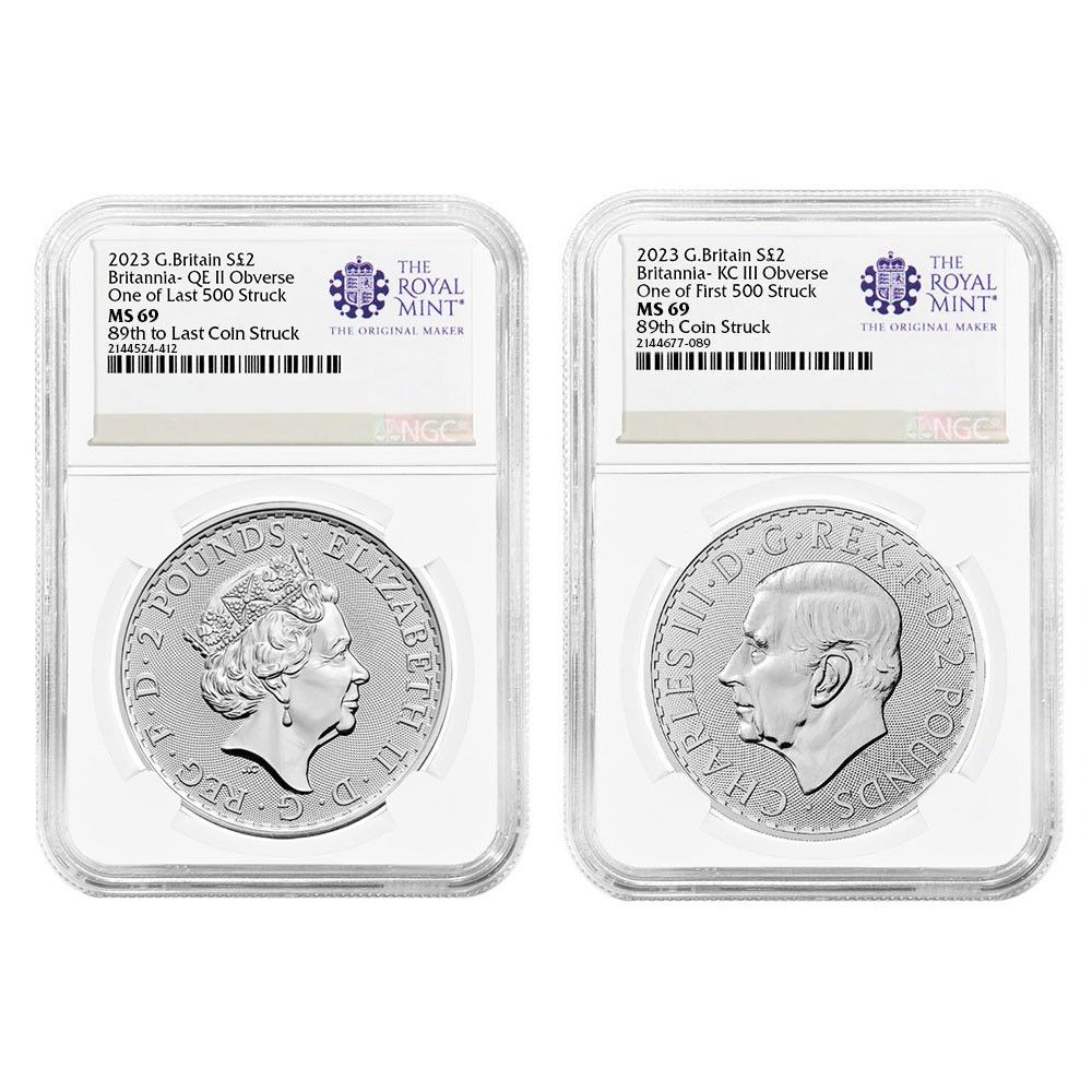 2023年 英国製 シルバー ブリタニア セット NGC MS69 ファースト ラスト 500 ストラック #89 ロイヤル2023 U.K. Silver Britannia Set NGC MS69 First Last 500 Struck #89 Royal