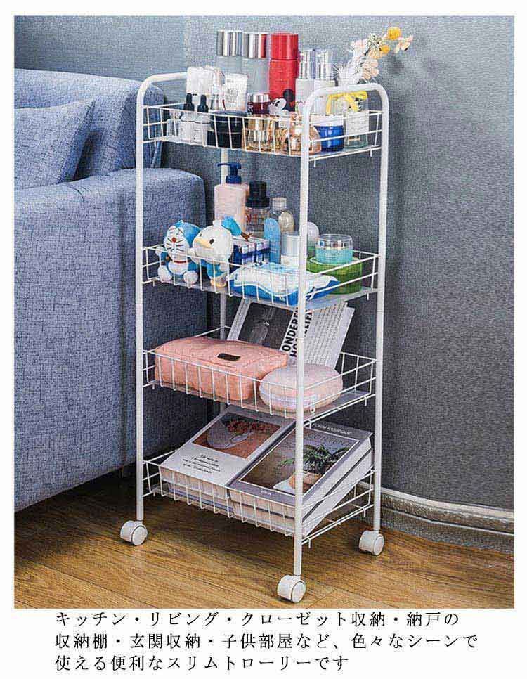 キッチン?リビング?クローゼット収納?納戸の収納棚?玄関収納?子供部屋など、色々なシーンで使える便利なスリムトローリーです
