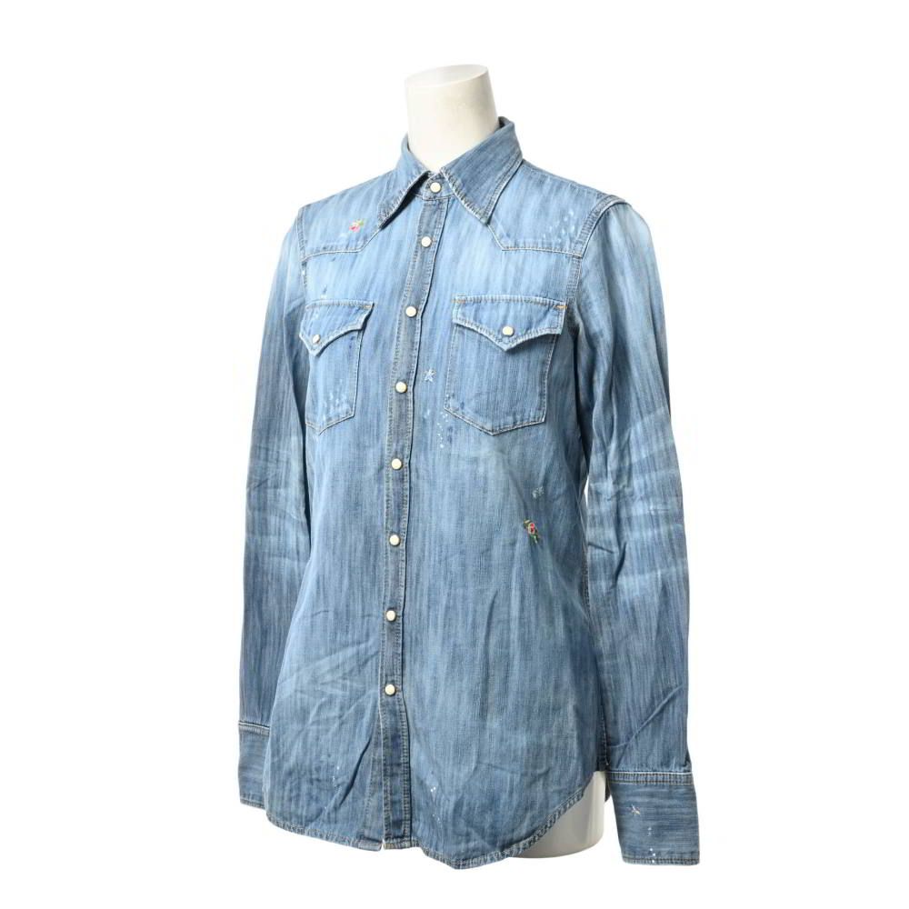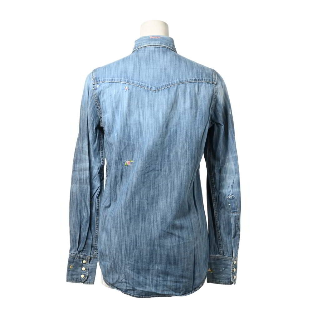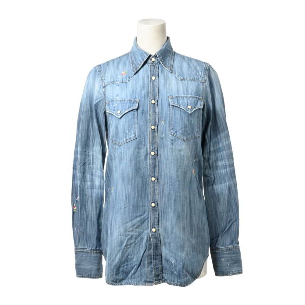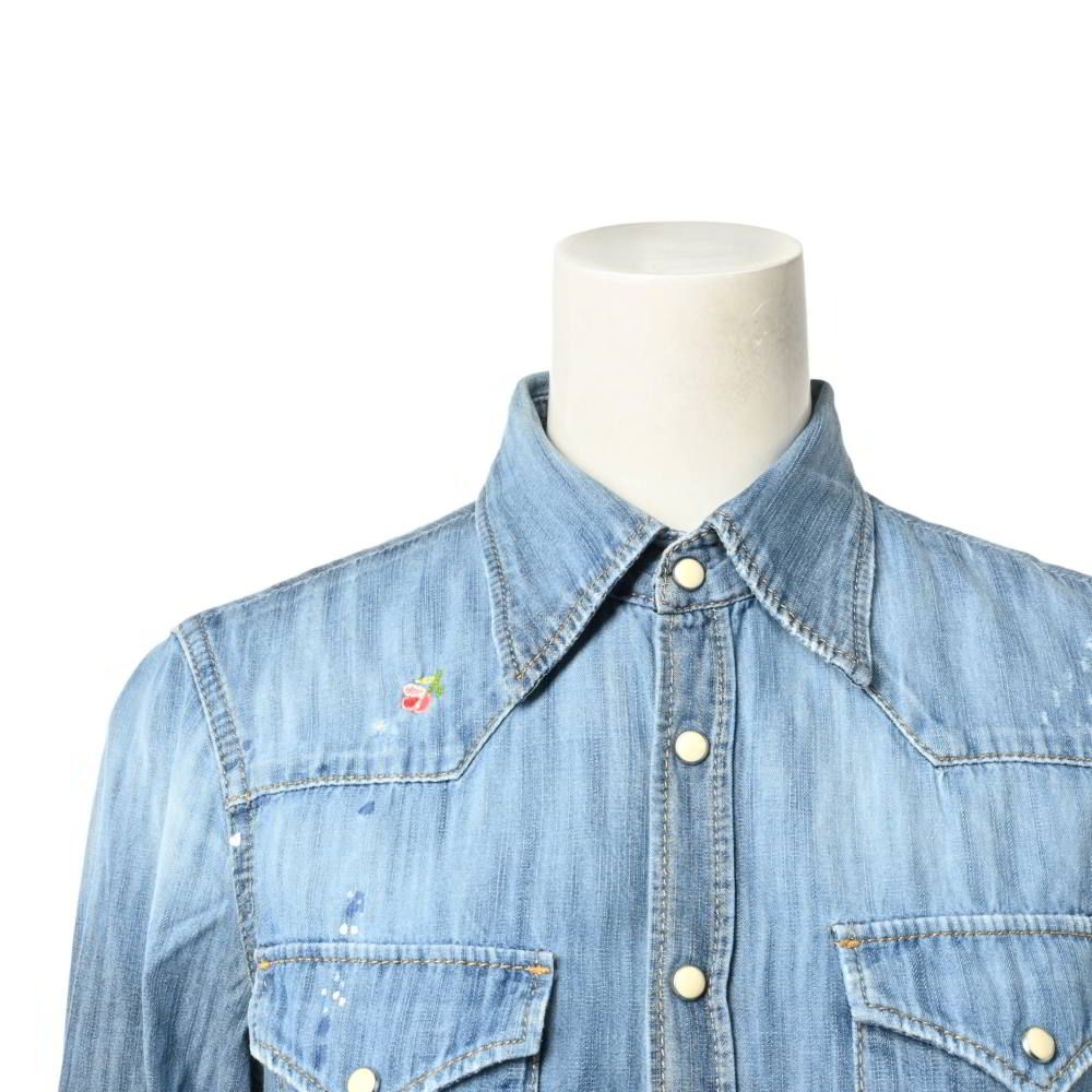 【商品名】:DSQUARED2 刺繍 ユーズド加工 デニム ウエスタン シャツ