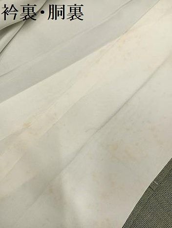 状態は接写画像のように衿裏・胴裏に薄いシミがございますが