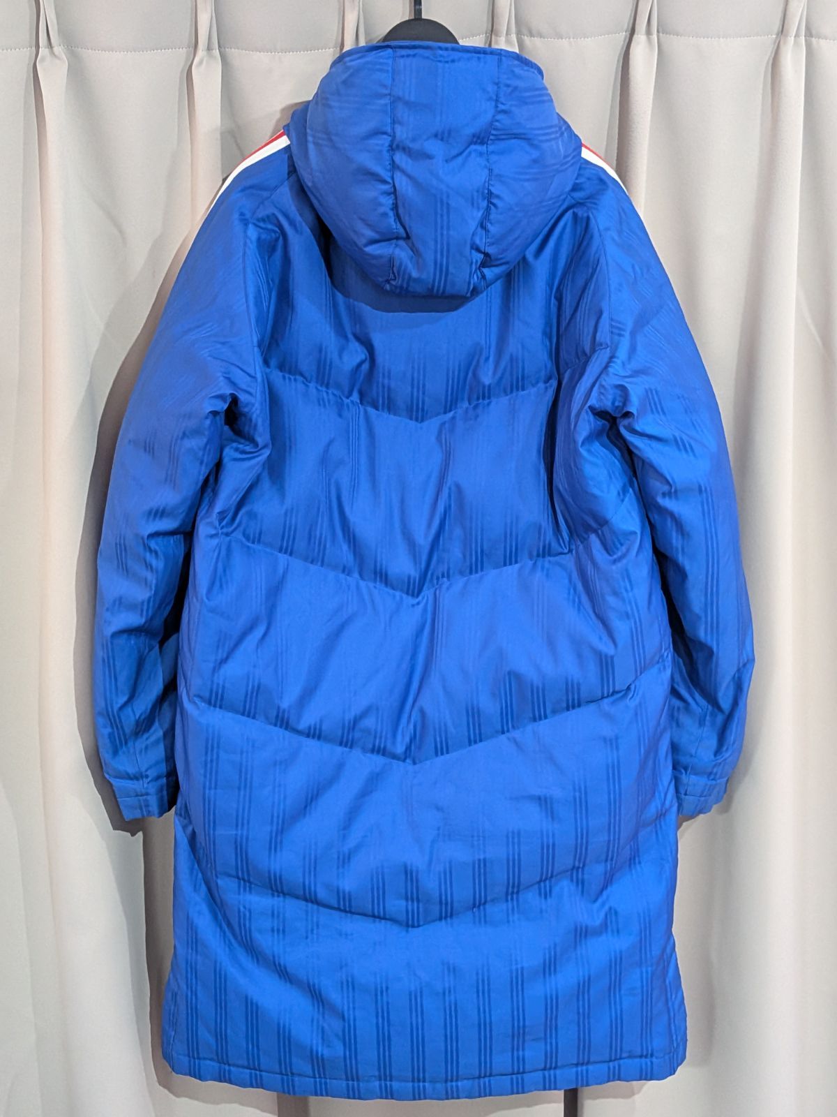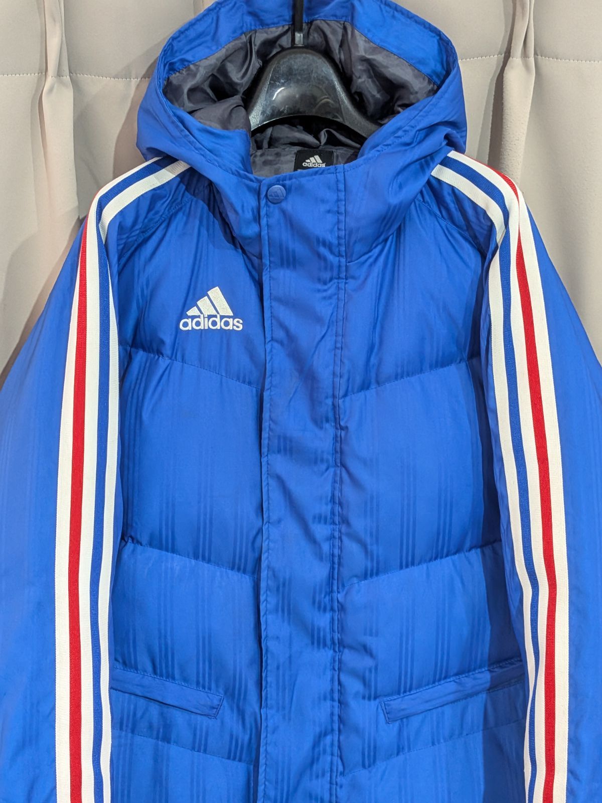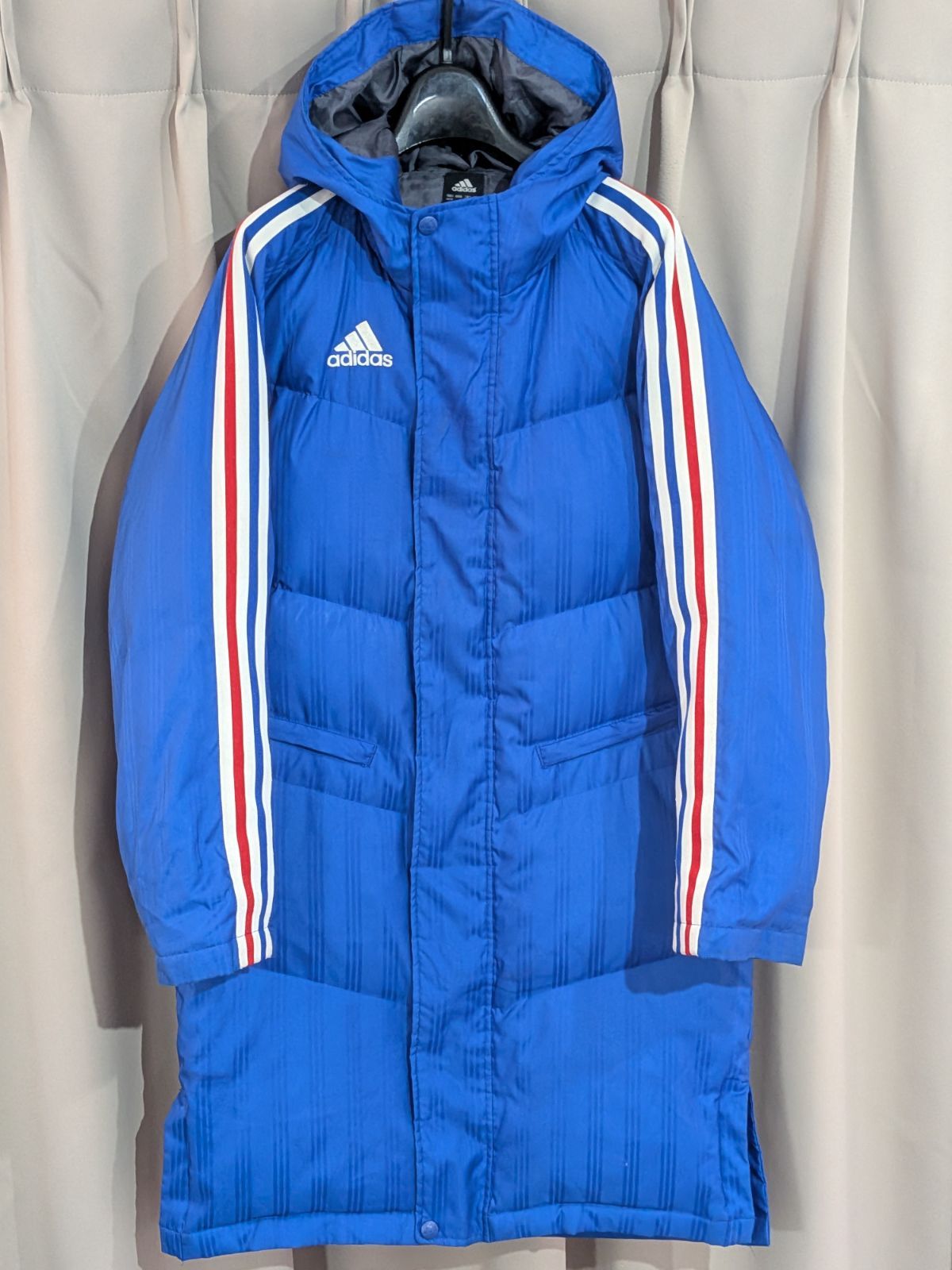adidas アディダス ダウン ベンチコート 150 青 トリコロール キッズ ジュニア
