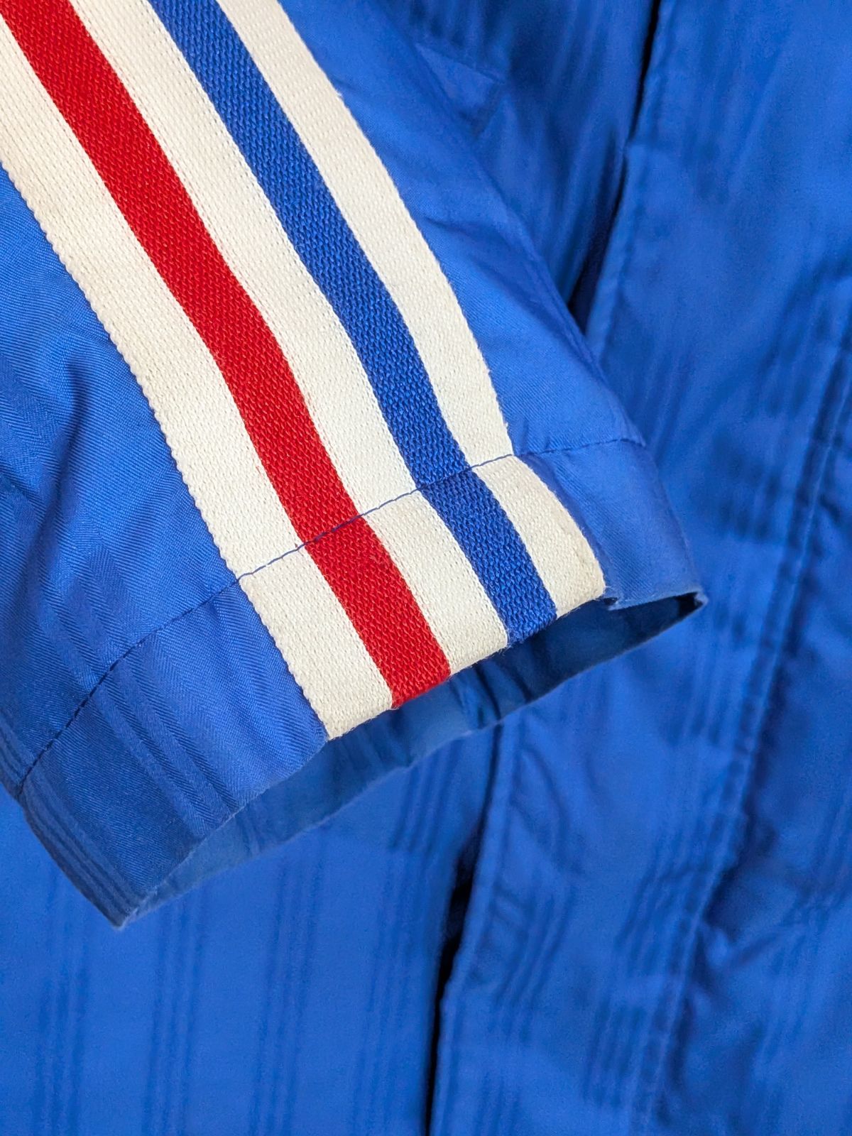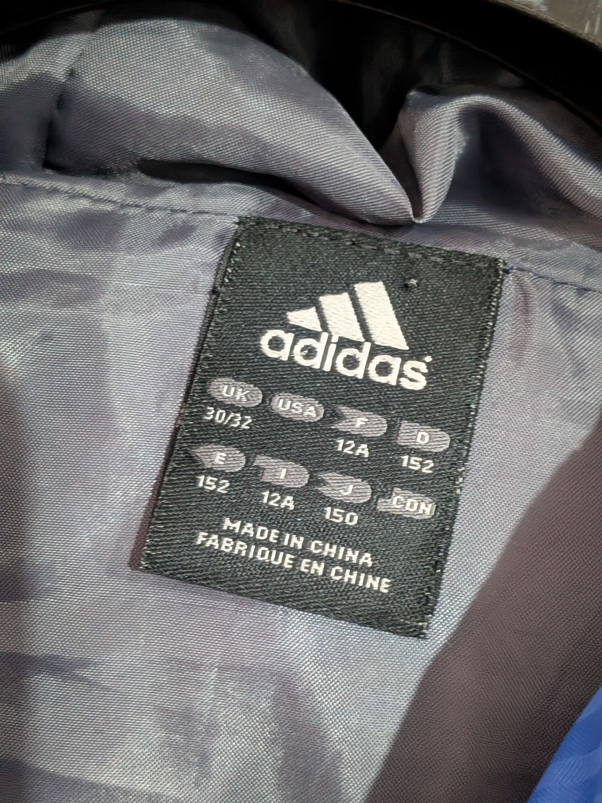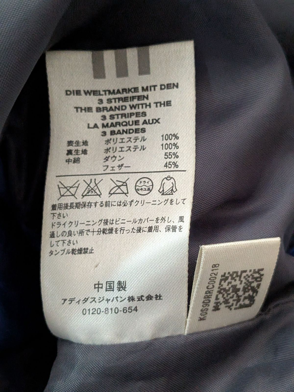 adidas アディダス ダウン ベンチコート 150 青 トリコロール キッズ ジュニア