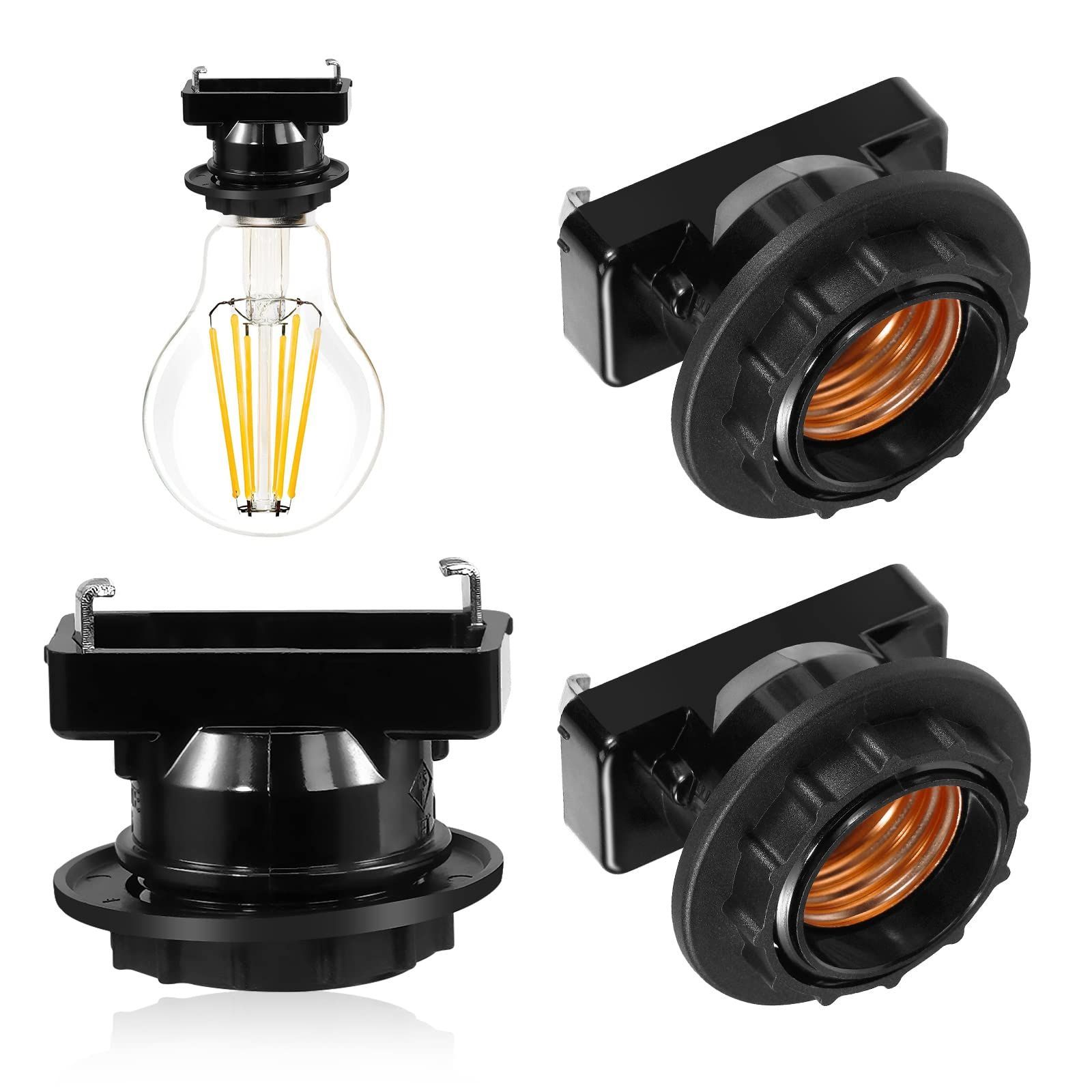 Aiwode 角型引掛けランプソケットE26口金、引掛シーリング用 電球ソケット ランプソケット、led対応 ペンダントライト、工事不要 取り付け簡単(黒い、3個入り)