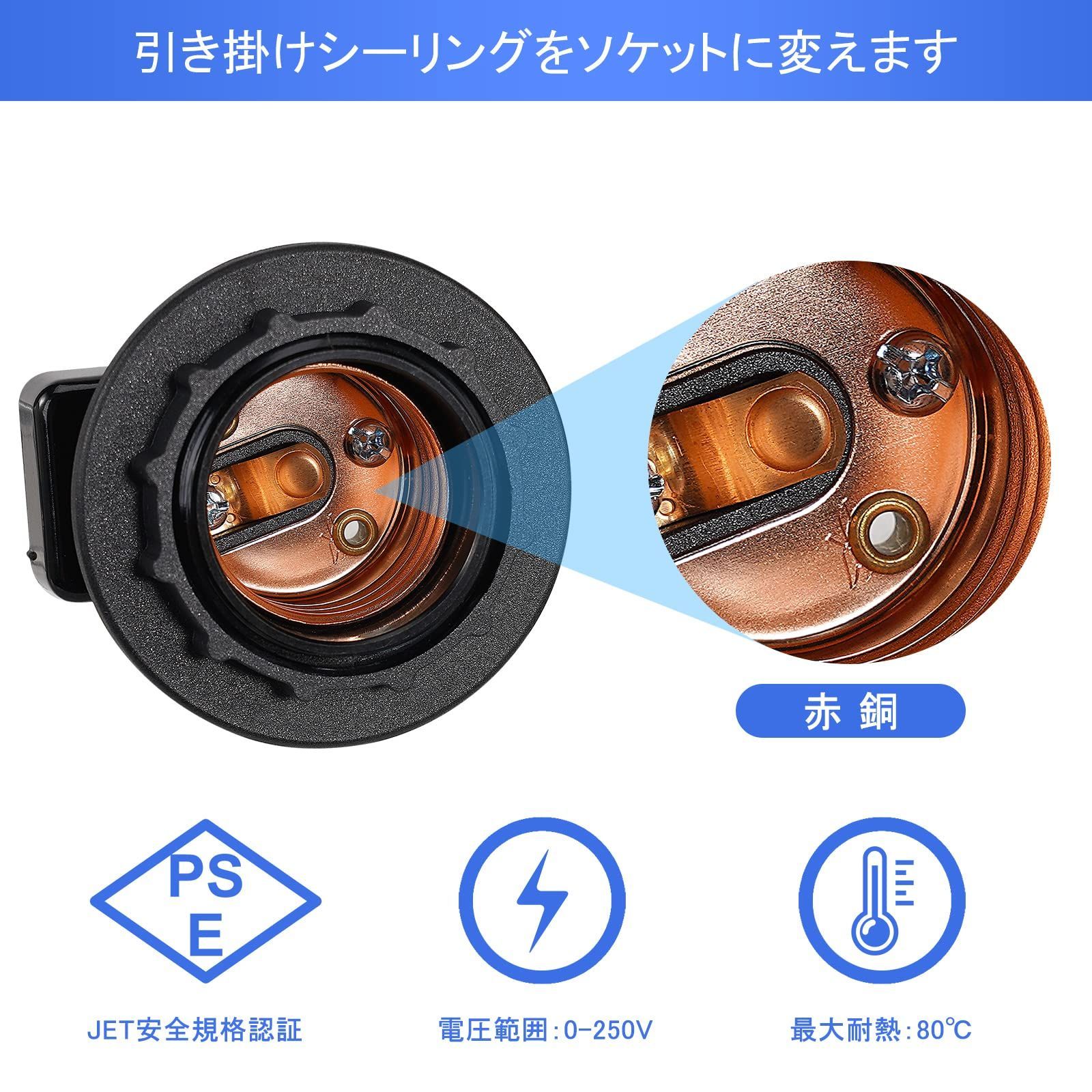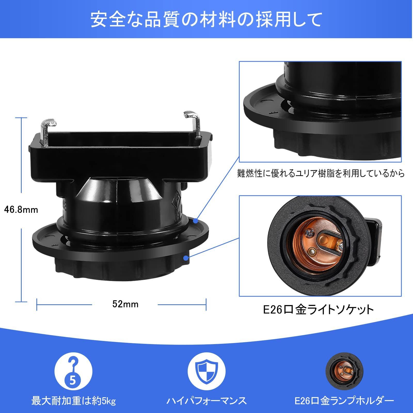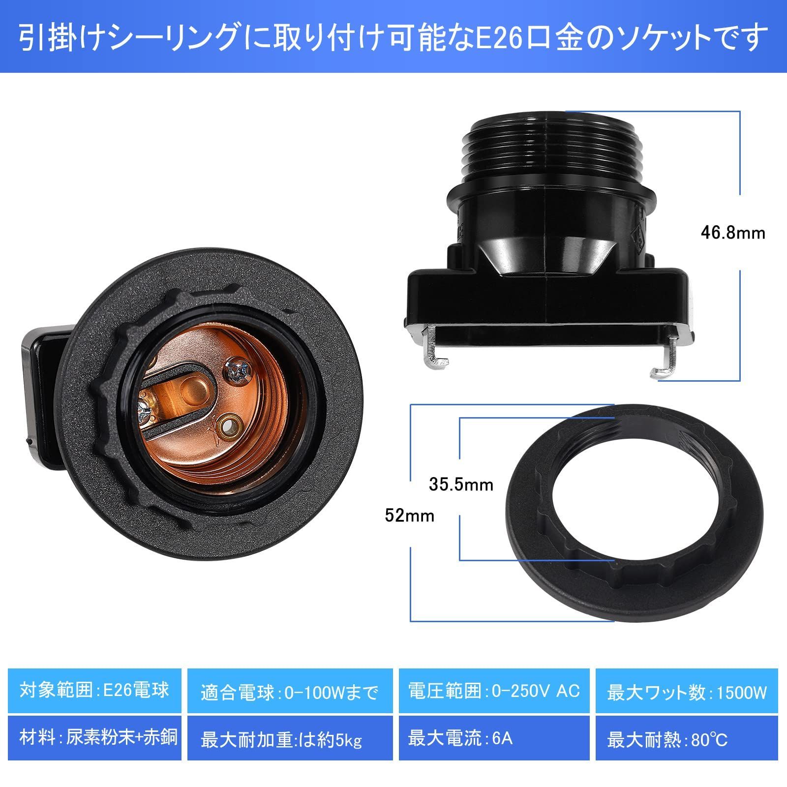 1.引掛けシーリングに取り付け可能なE26口金のソケットです、包装:3個入り、色:黒い、サイズ(CM):高さ4.4×幅2.4×全長5.2、材質:尿素粉末+赤銅、本体重量:40g/1個。