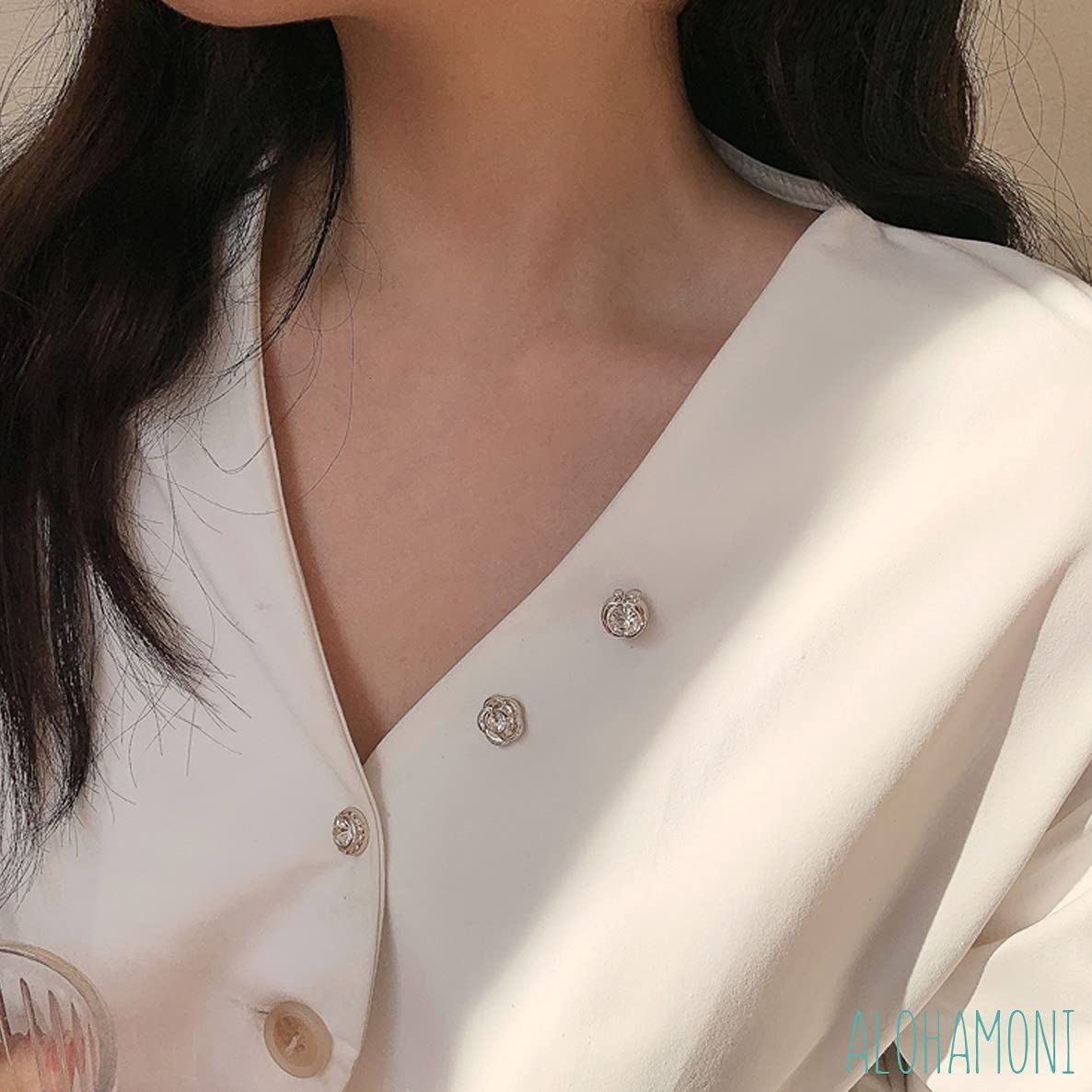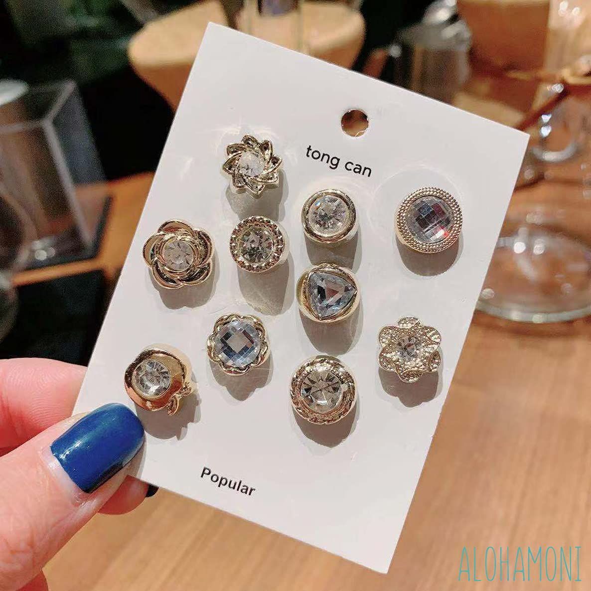 ALOHAMONI (アロハモニ) ブローチ タックピン 10個 セット ピンブローチ ピンバッジ ラペルピン ネクタイピン タイタック ハットピン ボタン 縫製不要 レディース メンズ キッズ ユニセックス (マグネットタイプ (ラインストーン))