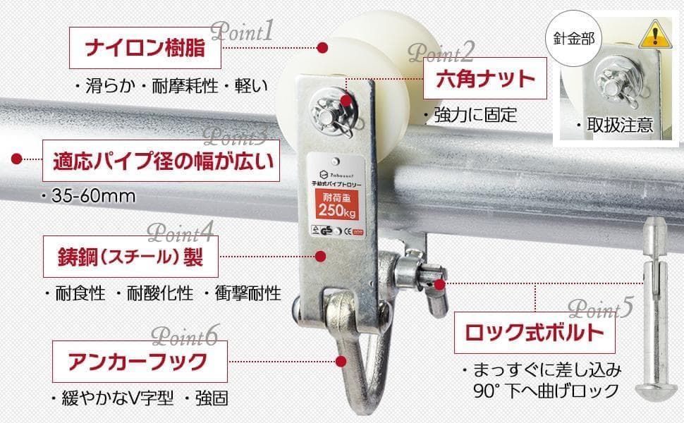 用途:単管パイプにホイストやチェーンブロック、滑車等を取り付けられます。 単管に取り付け荷物の移動や搬送が可能になります。