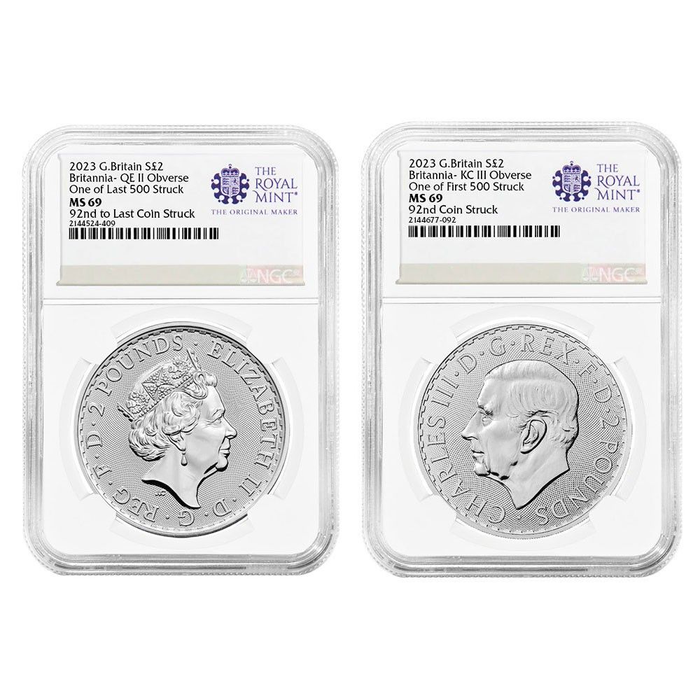 2023年 英国製 シルバー ブリタニア セット NGC MS69 ファースト ラスト 500 ストラック #92 ロイヤル2023 U.K. Silver Britannia Set NGC MS69 First Last 500 Struck #92 Royal