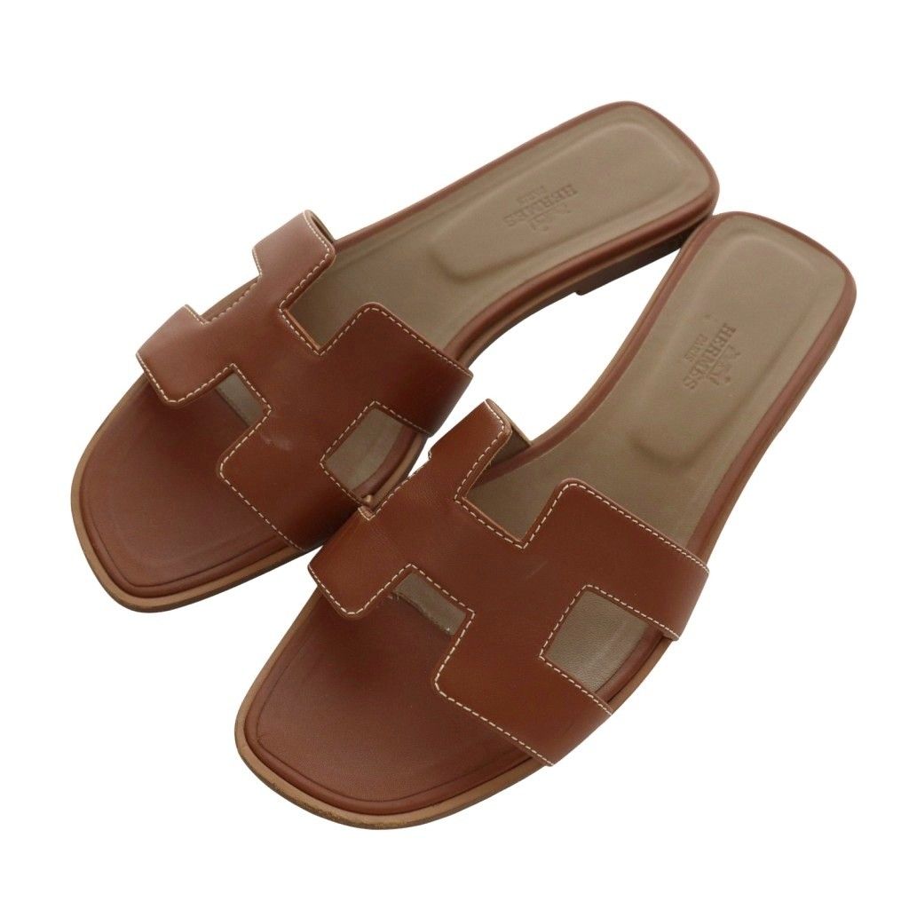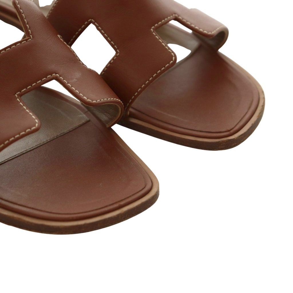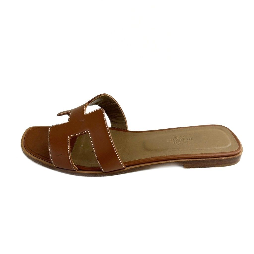 【商品名】エルメス HERMES オラン フラットサンダル ミュール Hロゴ レザー 40 25.5-26.0cm 茶 ブラウン /AQ ■OS