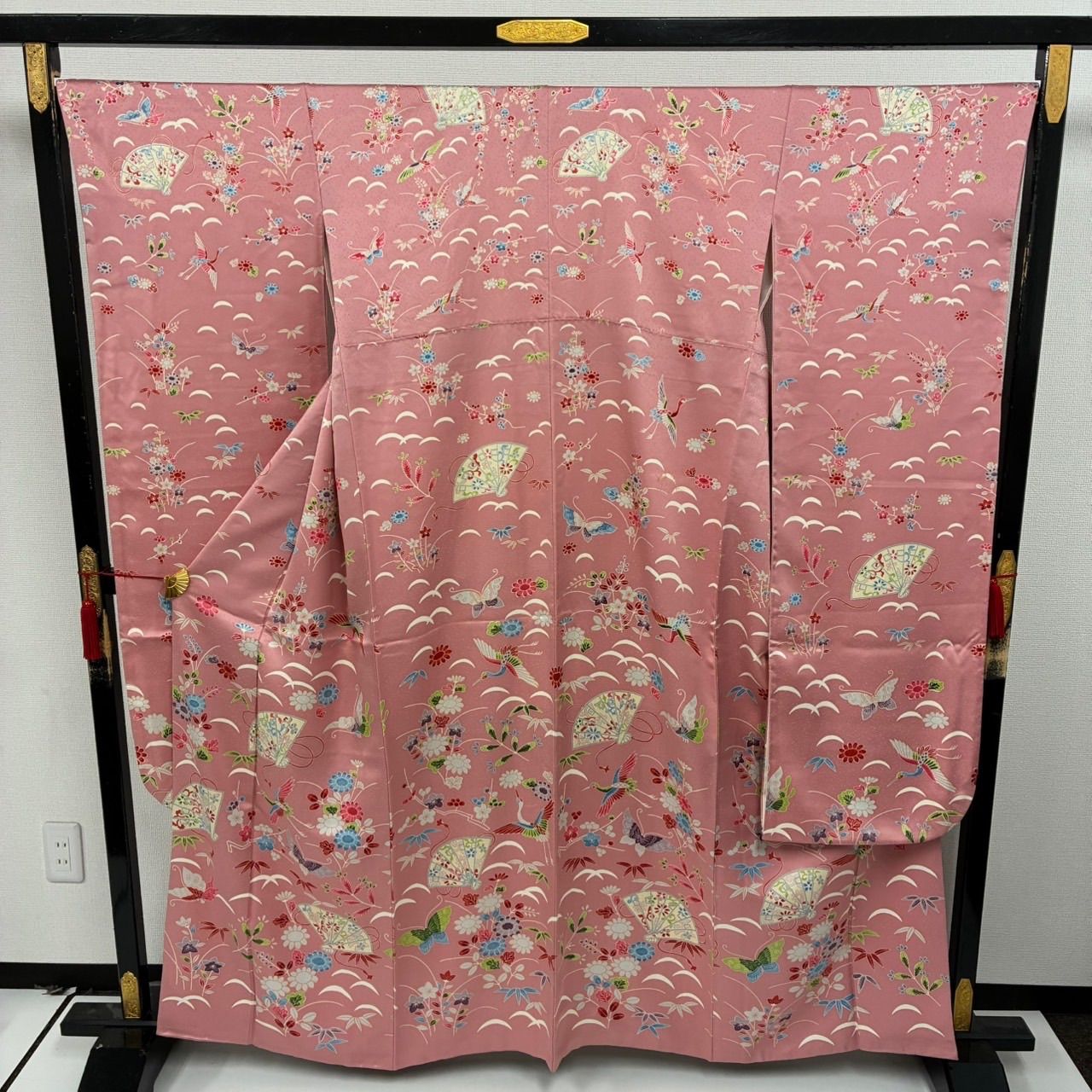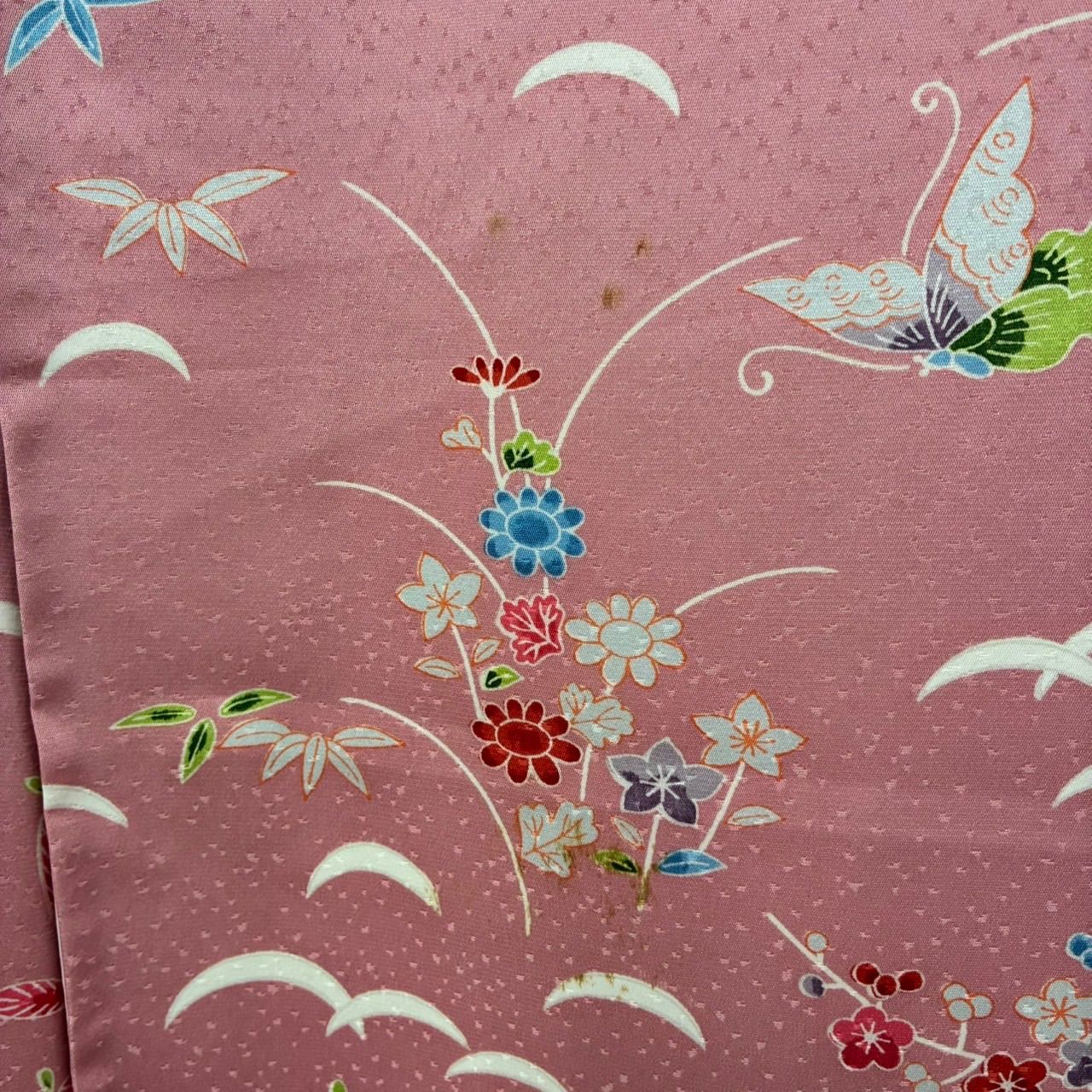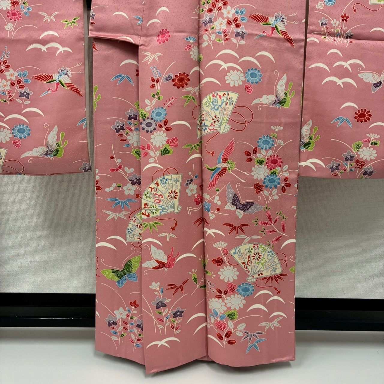 振袖 裄68 正絹 型染め 美しい染め ピンク色 袷 着物MK-2445