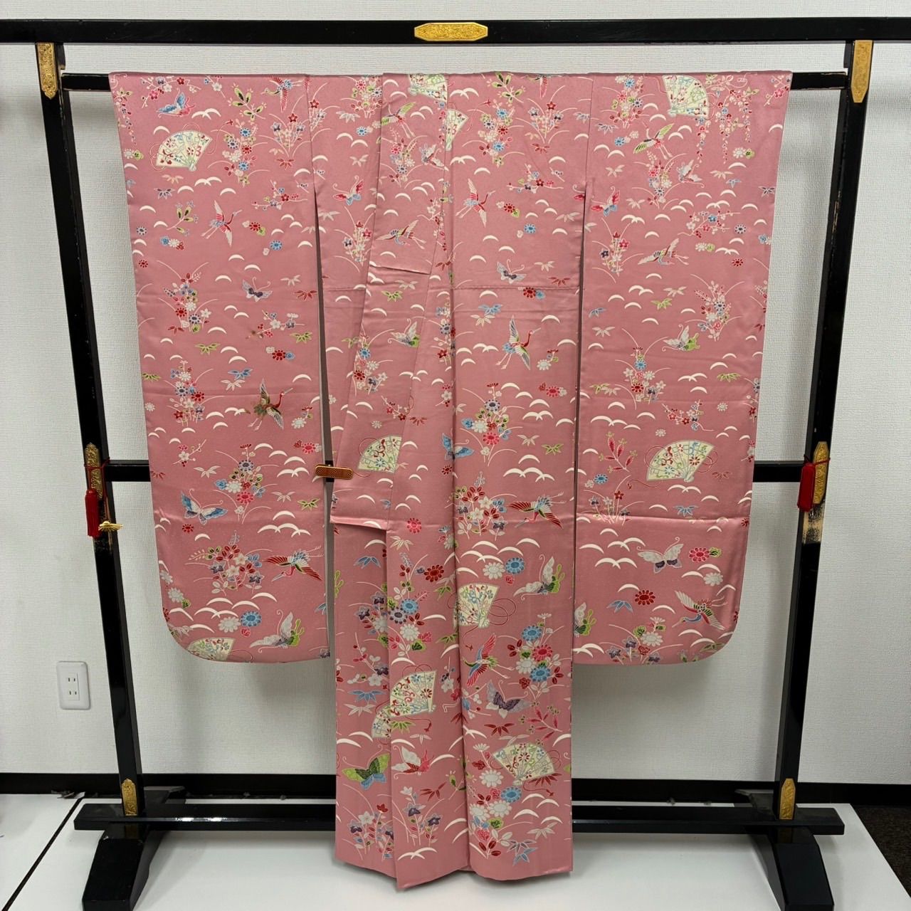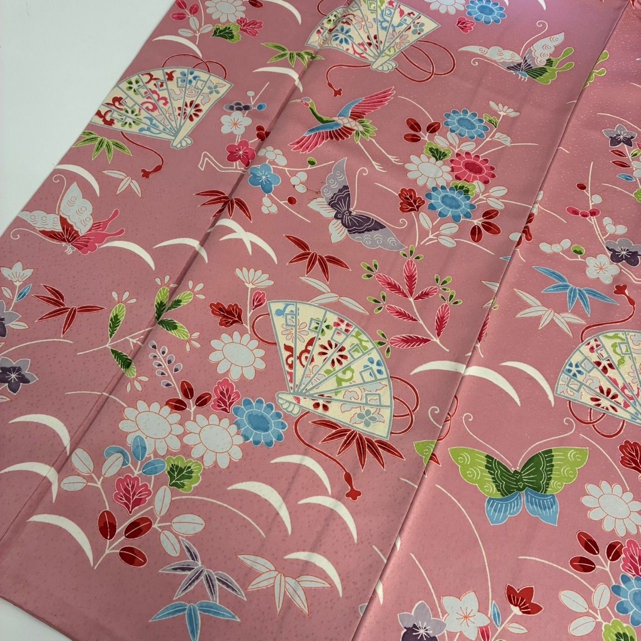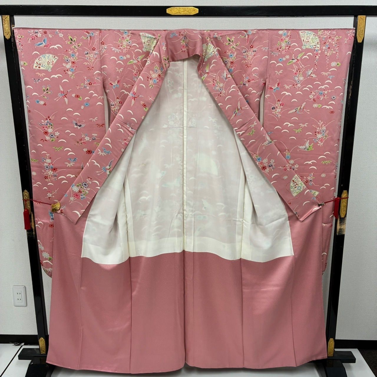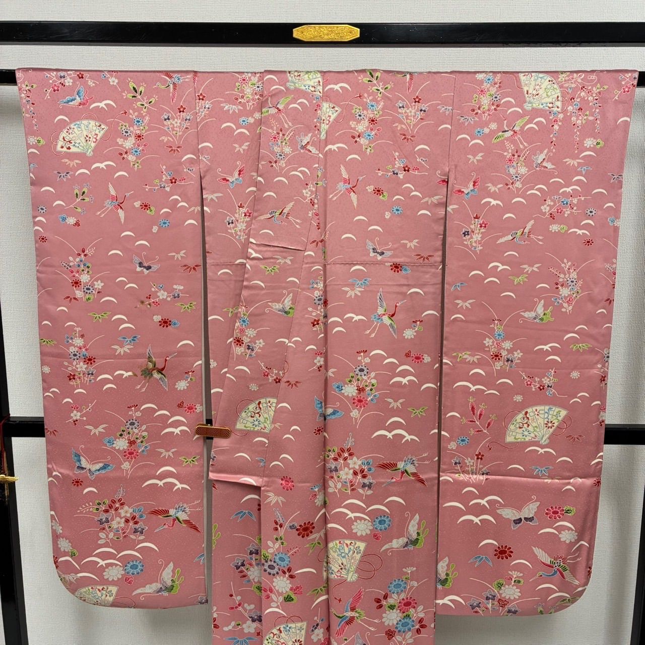 振袖 裄68 正絹 型染め 美しい染め ピンク色 袷 着物MK-2445