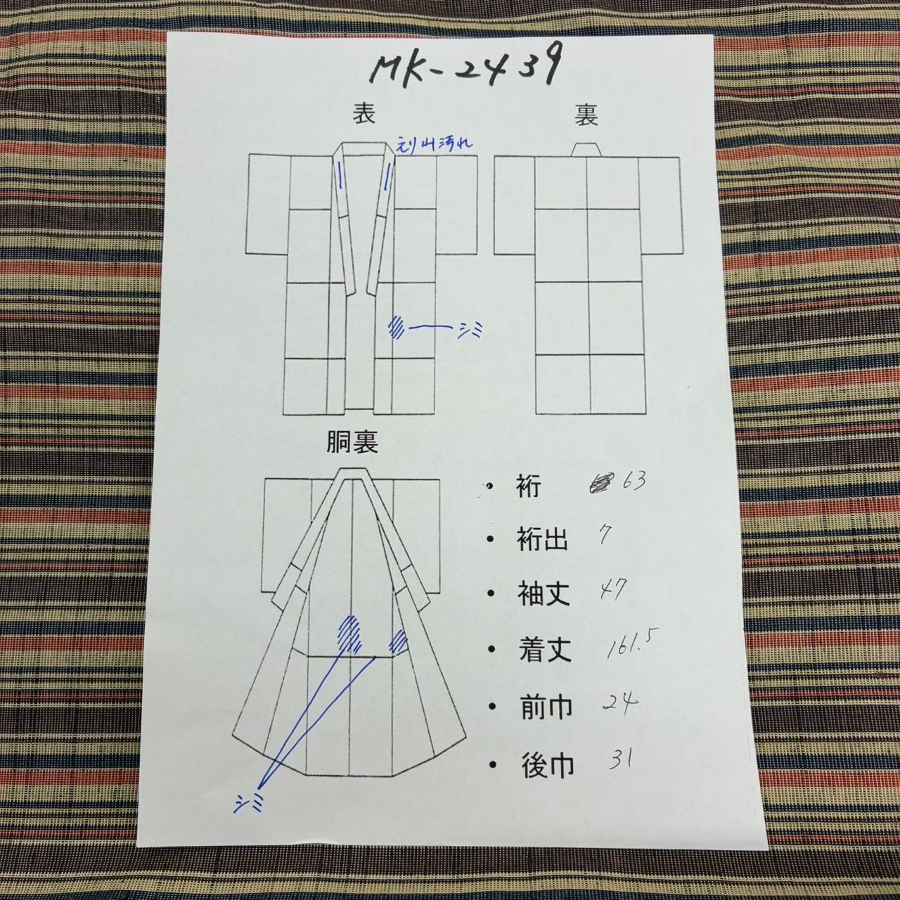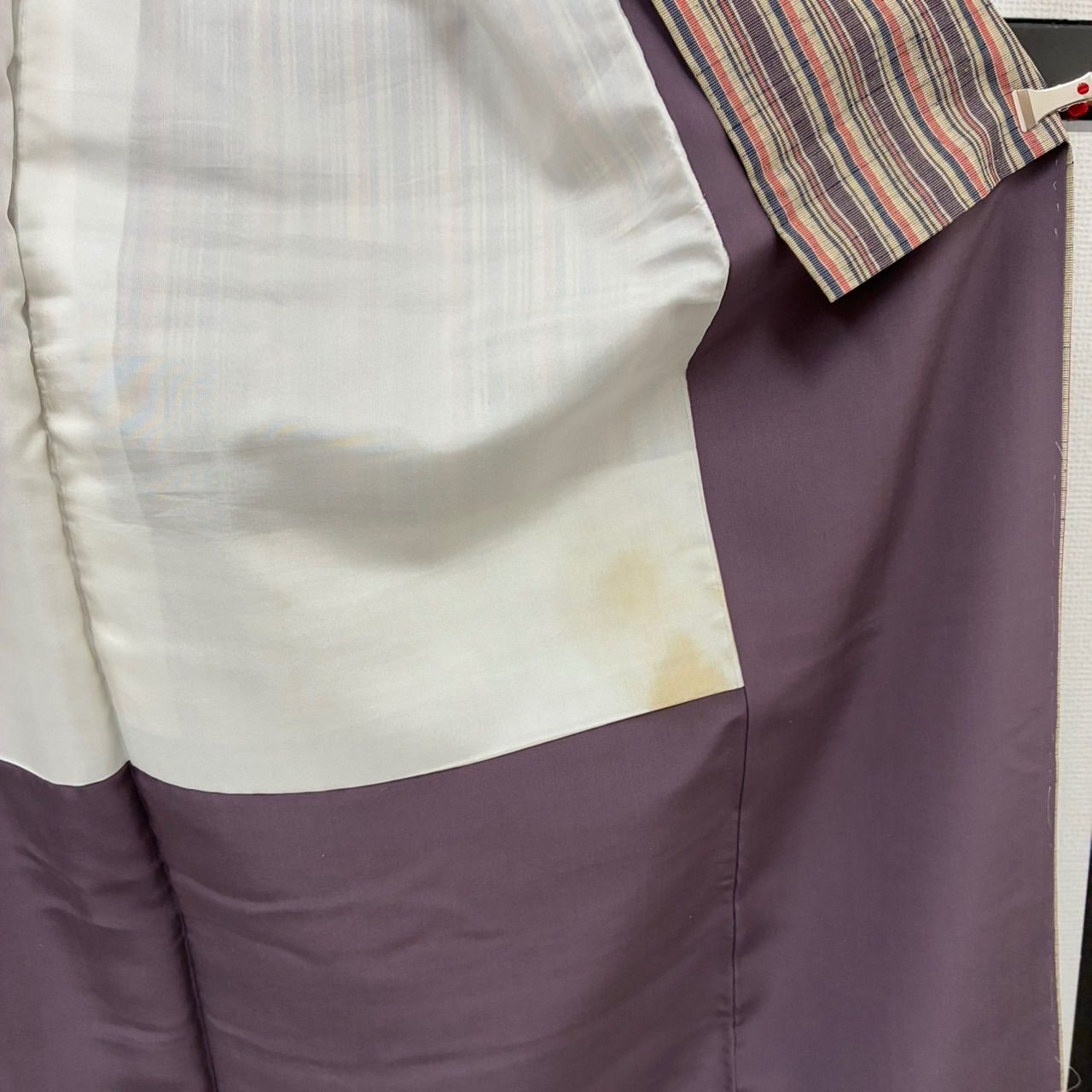 衿山、身頃、同裏にシミがあります。