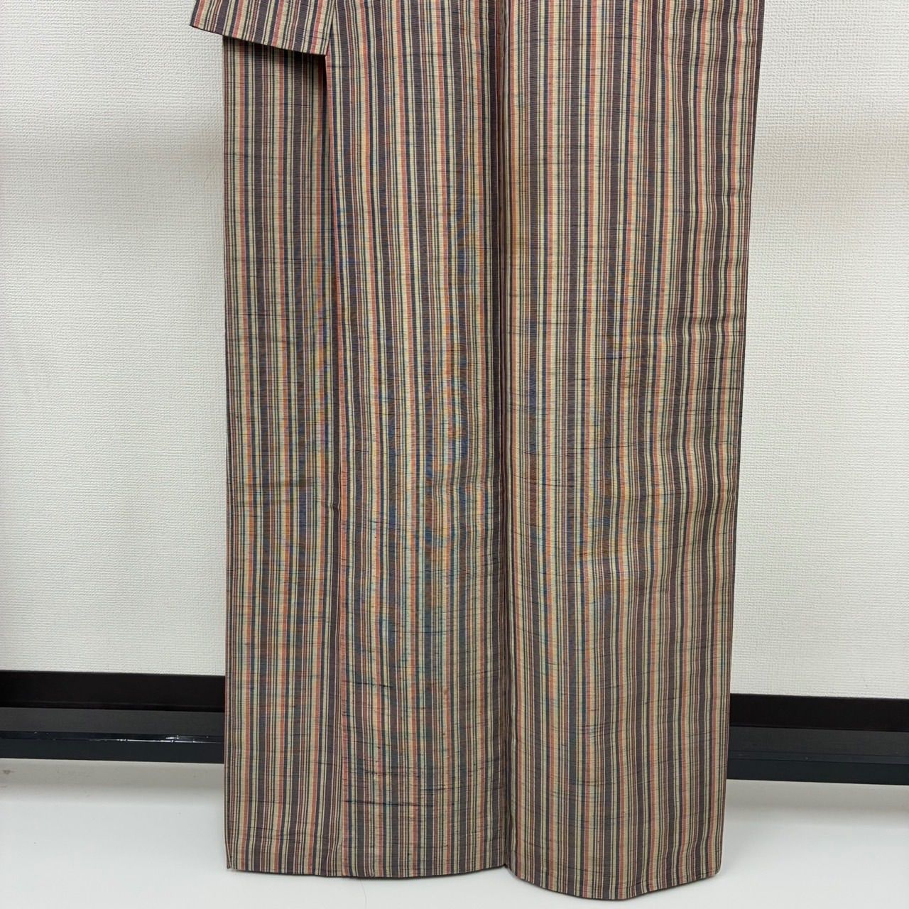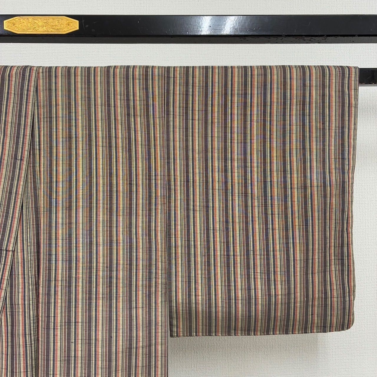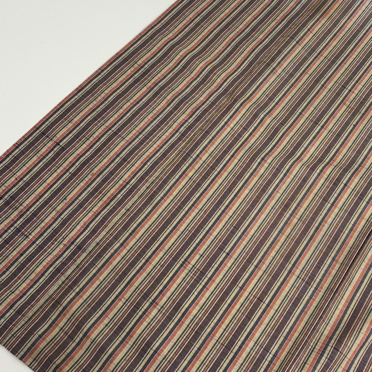 紬 正絹 紬 縞 風合い良い 袷 着物 MK-2439