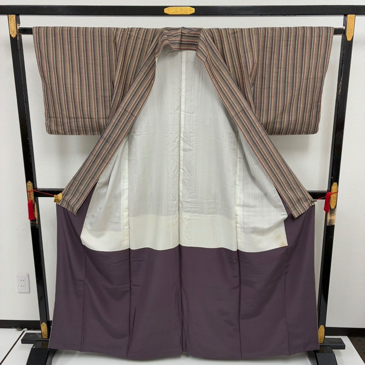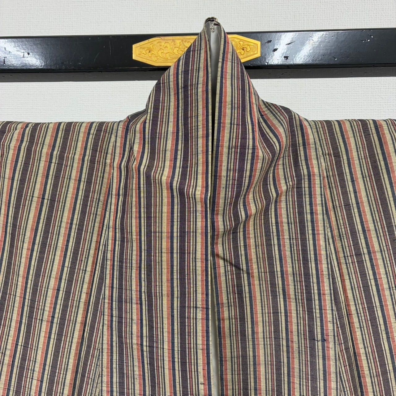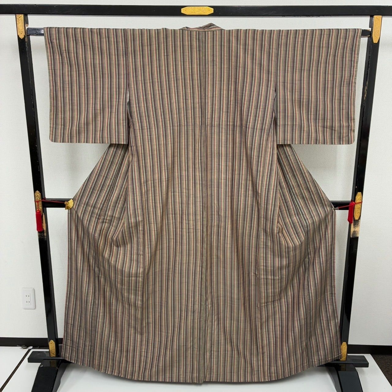 紬 正絹 紬 縞 風合い良い 袷 着物 MK-2439