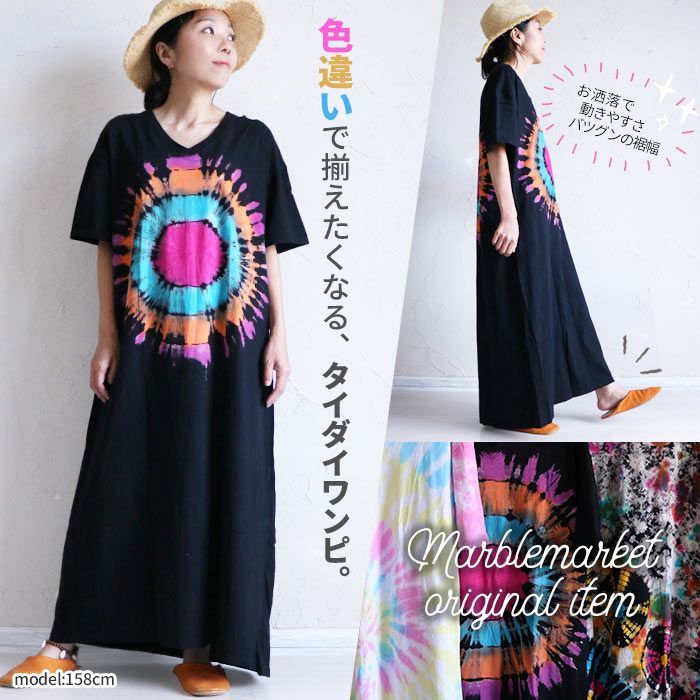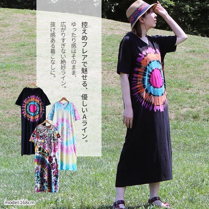 【キーワード】[ エスニック エスニックファッション ワンピース ロングワンピ 婦人 婦人服 ミセス 部屋着 ルームウェア おうちコーデ 普段着 デイリーコーデ 外出着 おしゃれ着 ワンマイルコーデ ワンマイルウェア ロング丈 マキシ丈 長い 長め 半袖 Vネック ゆったり サイズ ゆる ラフ ゆとり 体型カバー 着痩せ リラックス 快適 ストレスフリー 楽ちん らくちん 楽チン 民族 ボヘミアン ネイティブ インディアン ネイティブアメリカン カジュアル 大人カジュアル 個性派 派手 目立つ こなれ感 ぬけ感 ヌケ感 タイ 総柄 タイダイ染め タイダイ柄 タイダイ模様 レディース 女性 女子 大きいサイズ オーバーサイズ ルーズ 大きめ ビッグサイズ Sサイズ Mサイズ Lサイズ 室内用 屋内 部屋 おうち時間 外出用 おでかけ お出かけ 普段使い デイリー リラックスタイム 休日 アウトドア キャンプ レジャー 旅行 泊まり フェス イベント ライブ お祭り 綿100% コットン100% 伸びる ストレッチ 伸縮性 ブラック 黒 ピンク パステルカラー 淡い カラフル マルチカラー Aライン フレア オリジナル デザイン 限定 エスニックデザイン エスニックテイスト アジアンデザイン アジアンテイスト かぶらない 人とかぶらない カラバリ 色違い カラー 春 春物 夏 夏物 秋 秋物 メール便 20代 30代 40代 50代 60代 マーブルマーケット まーぶるまーけっと ]