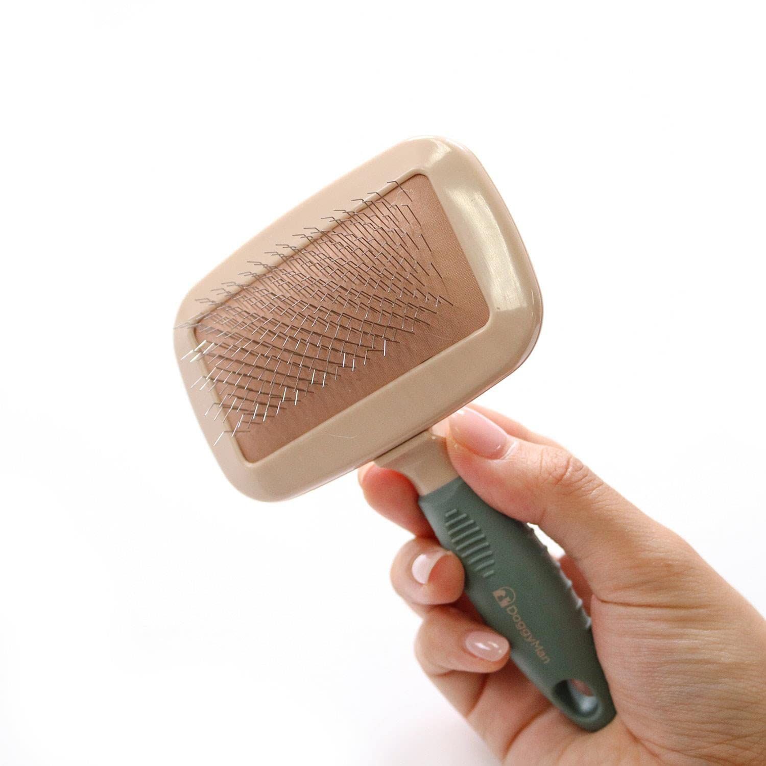 抜け毛やムダ毛を根元からしっかりかき取るスリッカーブラシ。