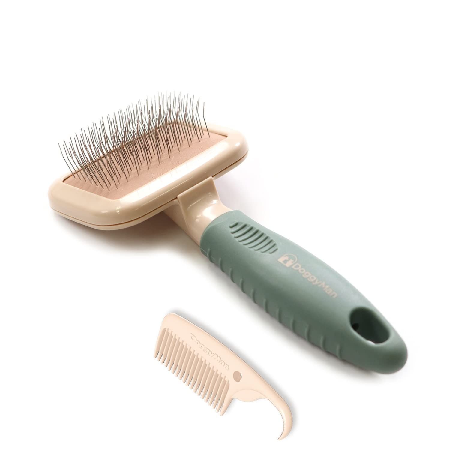 ●抜け毛やムダ毛を根元からしっかりかき取るスリッカーブラシ。●ふわっと仕上げるのに便利。●細目のステンレスピンが毛の根元をかき分けて、抜け毛を除去。お掃除クシ付き●クッション入りラバーを採用。ピンの肌へのあたりをやわらげる。●ドギーマンのペット美容室。犬猫用。ラバーグリップ・抗菌。耐熱温度:80℃耐冷温度:-20℃。