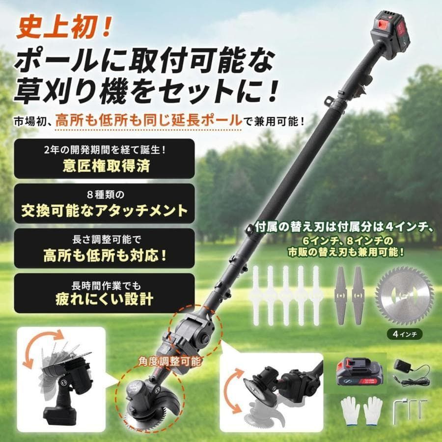 【草刈り機】コンパクトながらパワフルなモーターと高性能ブレードにより、固い雑草もスムーズに刈り取れます。