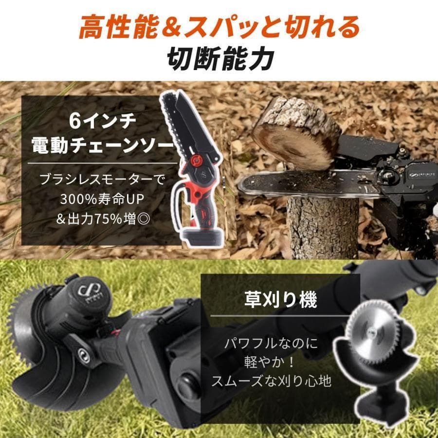 【6インチの電動チェーンソー】ブラシレスモーターを採用。ブラシのモーターを使用した電動チェーンソーと比較しすると寿命が300%UP。