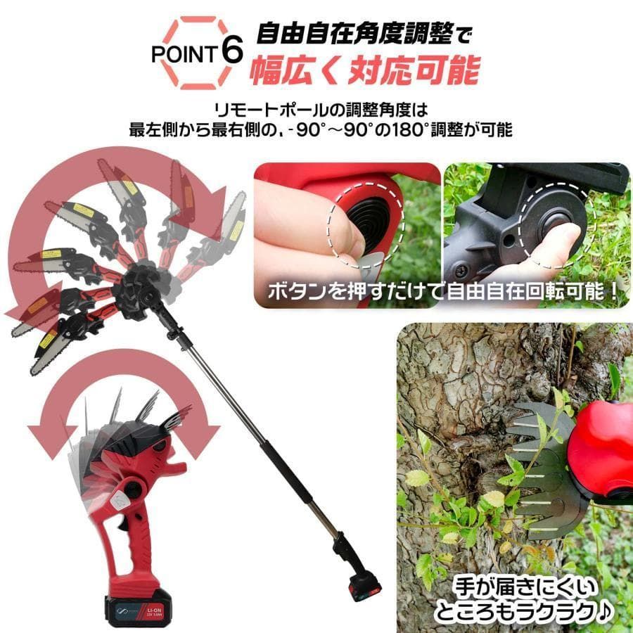 【付属品】チェーンソー・剪定バサミ・ヘッジトリマー・バリカン・延長ポール・バッテリー・充電器・収納バッグ・ベルト・手袋・ハサミ替え刃・チェーンソープレート&替えチェーン(6インチ・8インチ)・チェーンソーカバー・バッテリー2個・収納バッグ※2個口での発送となります。