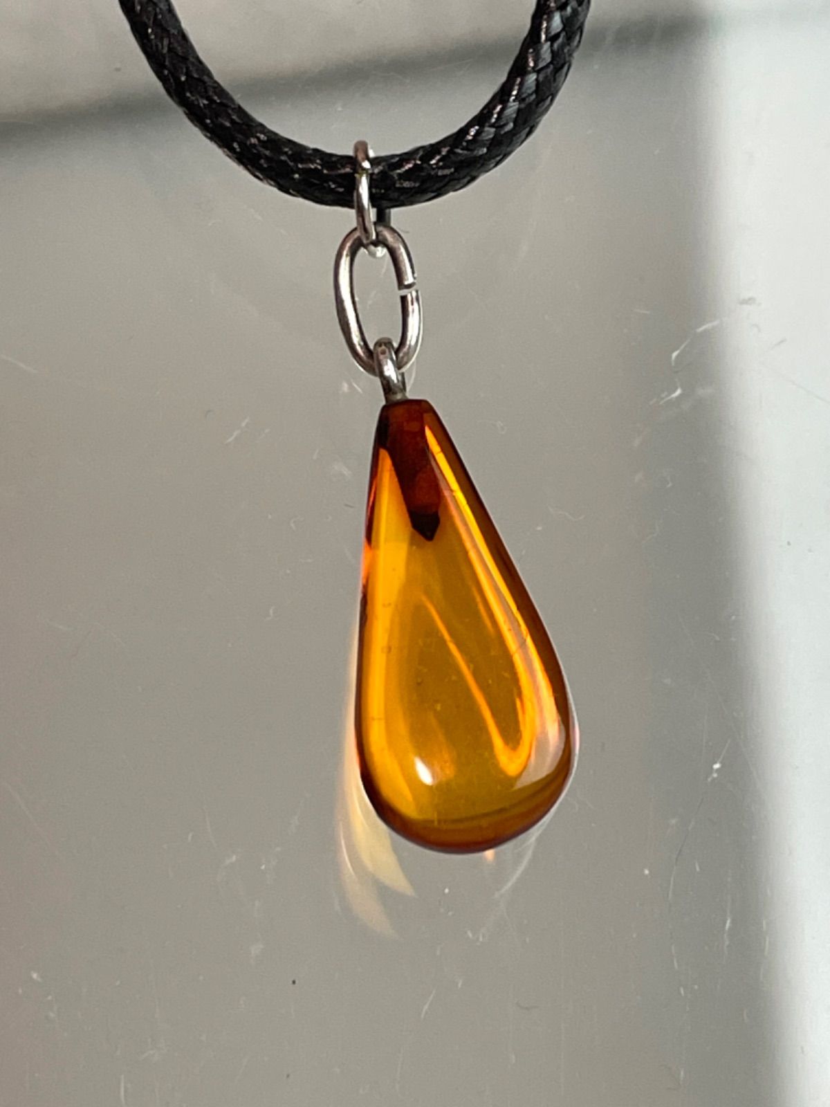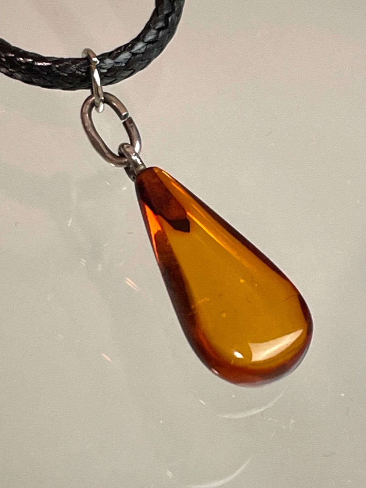 あたたかみのある輝きが美しい、天然琥珀(アンバー)のペンダントネックレスです。