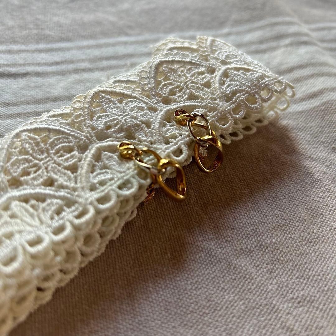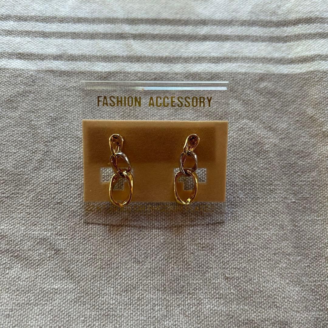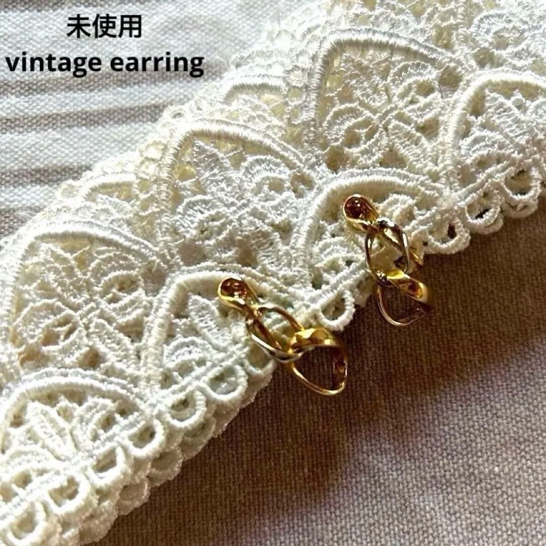 チェーンのようなデザインのわっかが繋がった未使用のビンテージイヤリングです。揺れ感のある華奢なデザインで、上品な雰囲気のアイテム
