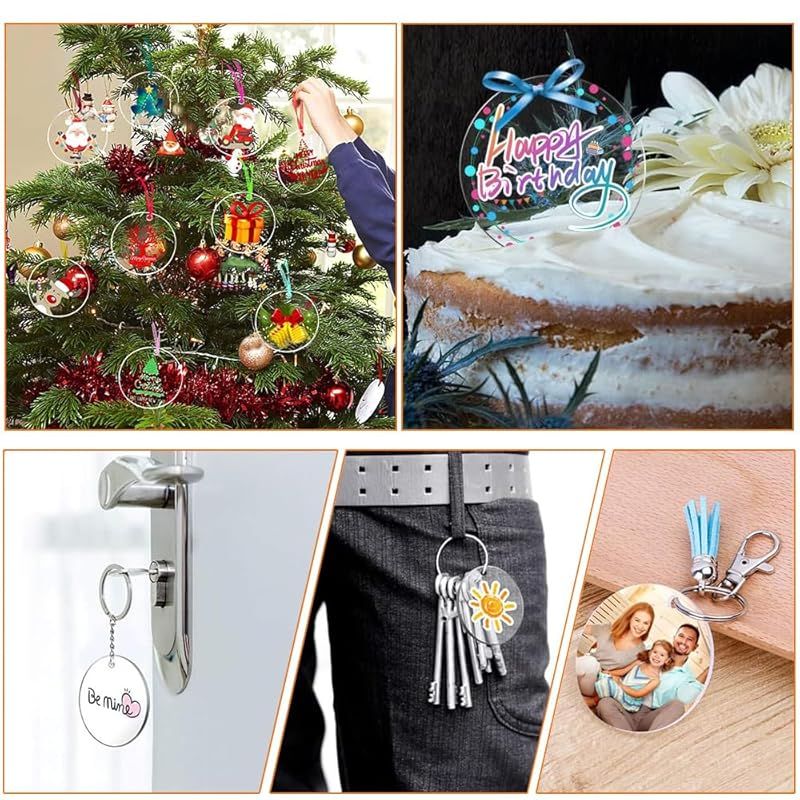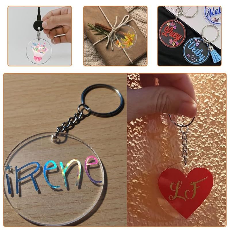 【様々な用途】このアクリル板は、キーホルダーやバッグタグ、オリジナルチャームとしてだけでなく、ギフトラッピング、クラフト作品の装飾、ウェディング記念品など、さまざまな用途に使用できます。