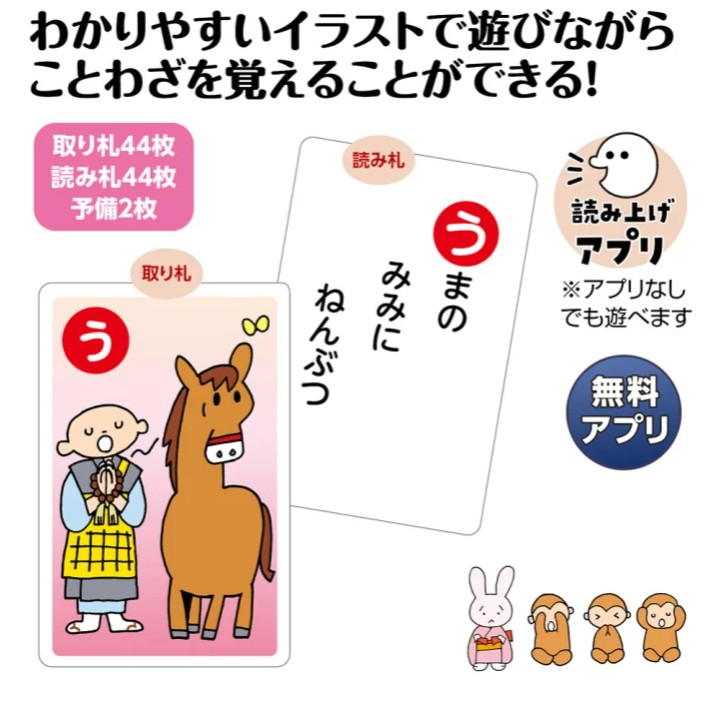 【商品説明】 楽しく遊びながらことわざを学べるかるたです