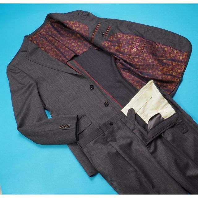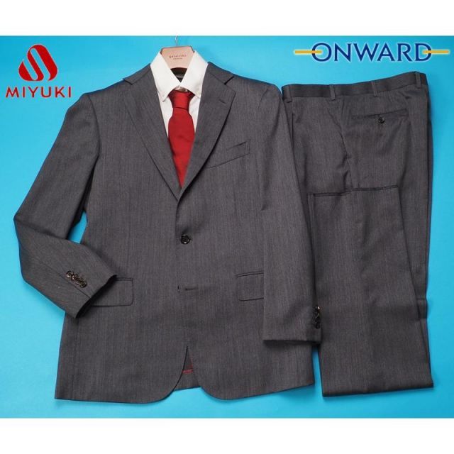 商品名:新品15.1万円 オンワード樫山 Royal Custom Purple Label Selflex 日本製 春秋『御幸毛織 MIYUKI KEORI』無地 スーツB6灰 HM9494