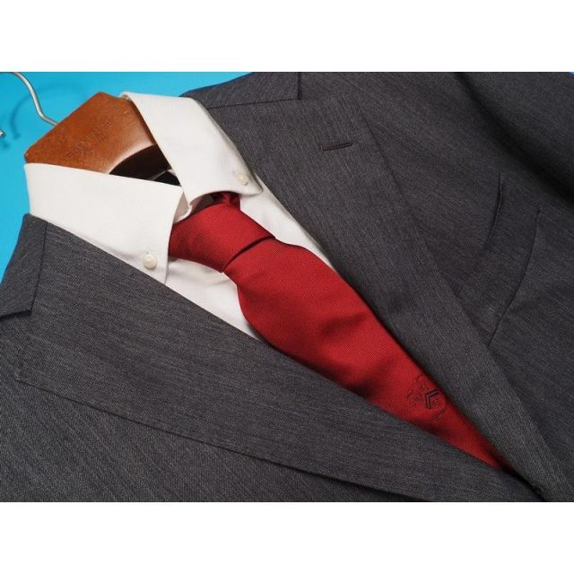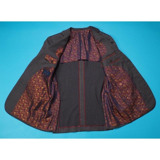 伊勢丹などの百貨店展開の『Selflex Purple Label』ブランドです。オンワードブランドの中で最上位のブランドになります。水牛釦、お台場仕立て、ジャガード裏地、AMFステッチ、毛芯を用いた縫製など、既製品のブランドスーツではここまで仕立てにこだわったスーツは手に入りません。ファブリックは国内最高峰の服地メーカーである『御幸毛織』の生地を使用。日本国内で織られた生地を日本国内で縫製した完全日本製の逸品です。