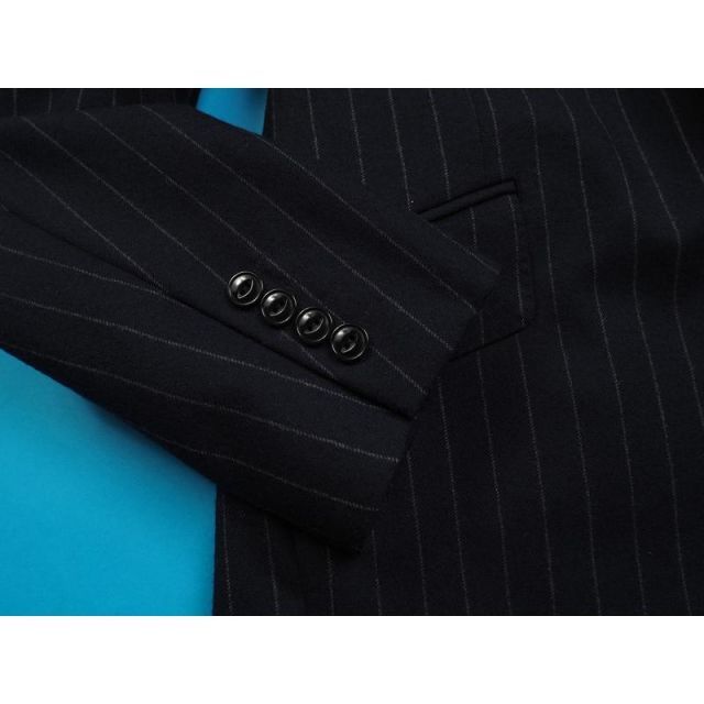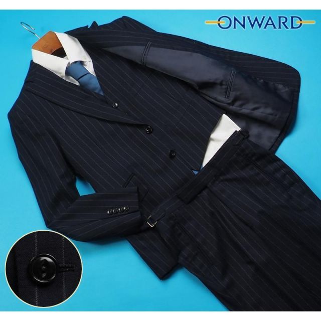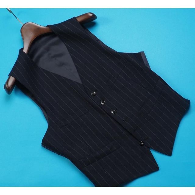 商品名:新品 オンワード樫山 日本製 ウール100% フランネル ストライプ スリーピーススーツD6/46(Y4)紺 NW6616