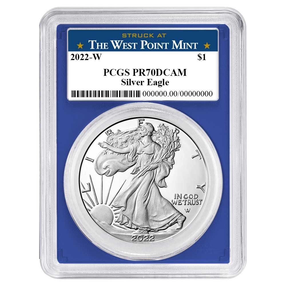 2022-W Proof $1 American Silver Eagle PCGS PR70DCAM West Point Label Blue Frame
