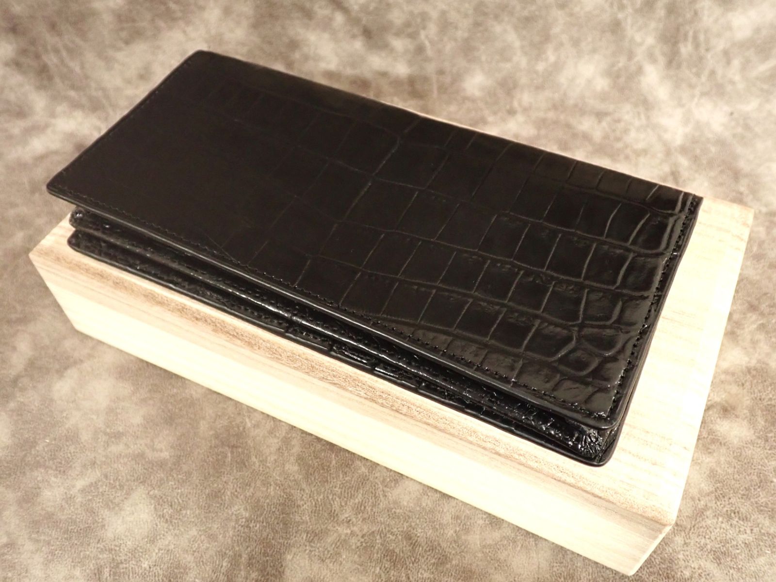 こちらは、最高級素材である本クロコダイルを、外装・内装すべてに使用した“無双仕立て”の長財布です。