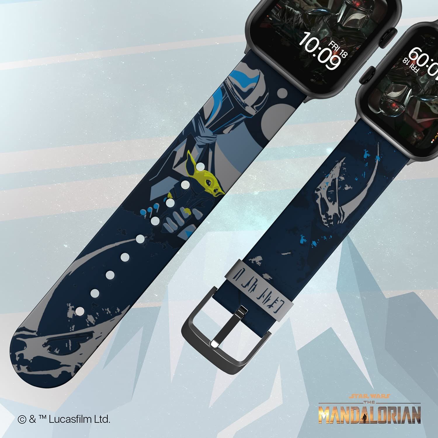 ベスカー・アーマーからインスピレーションを受けたこのウォッチバンドを身につけ、ブラスター・ファイアーに立ち向かい、ライトセーバーの攻撃を退け、ザ・チャイルドを危機から守れ!バンドにはクラン・マッドホーンの印形とザ・チャイルドを優しく抱えるマンダロリアンが施されています。
