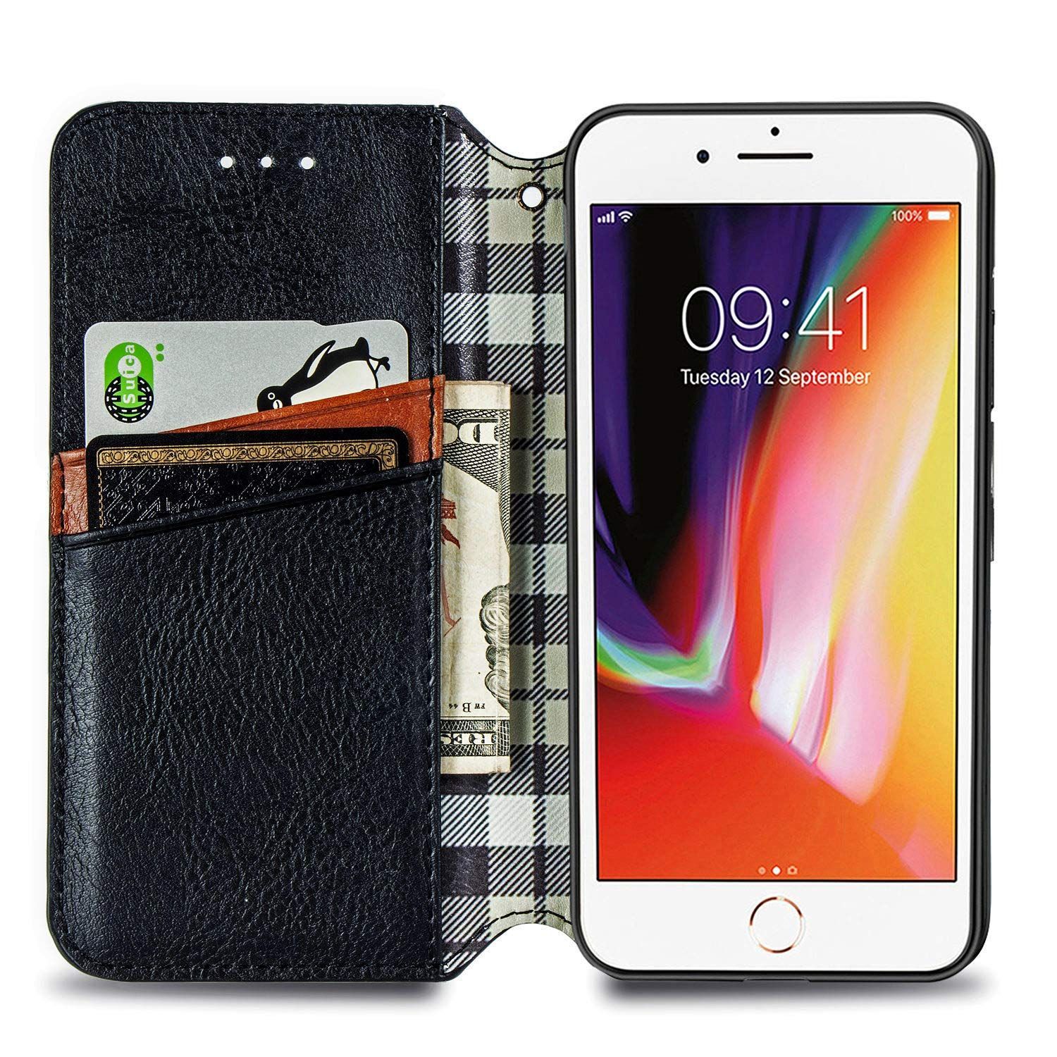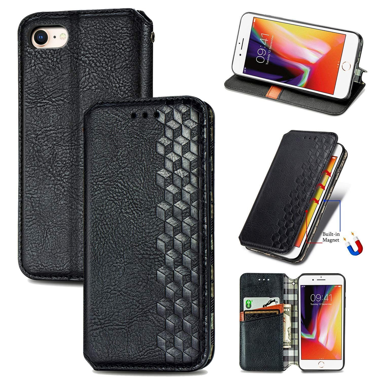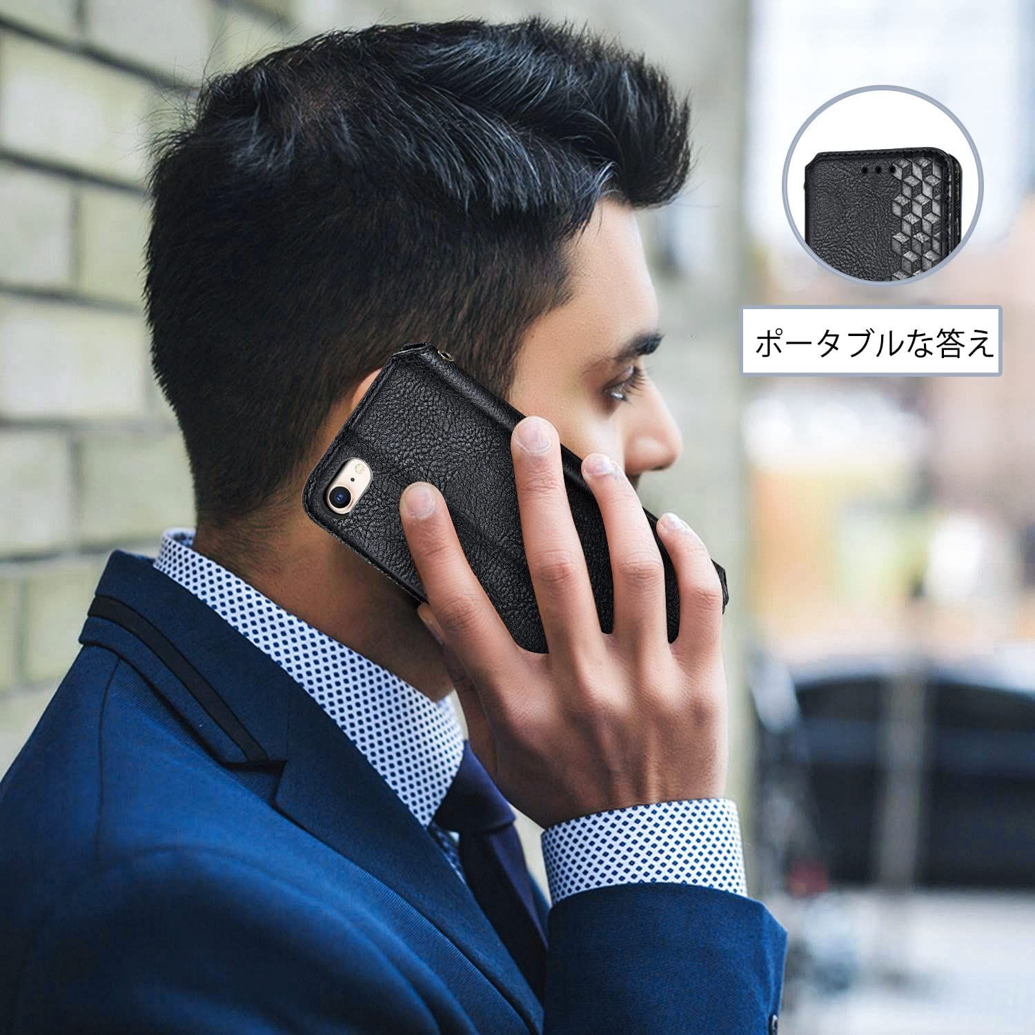 に適用するiPhone SE 第3世代 (2022) / iPhone SE 第2世代 (2020) / iPhone8 / iPhone7 ケース 手帳型 ノートブック型ビジネスフォンケース 携帯電話保護カバー強い吸引力ノートブック型多機能携帯電話ホルスター財布携帯電話ホルダーバンプパターンテクスチャ耐久性摩擦耐性携帯電話ケース男性と女性に適した多色オプション (黒)