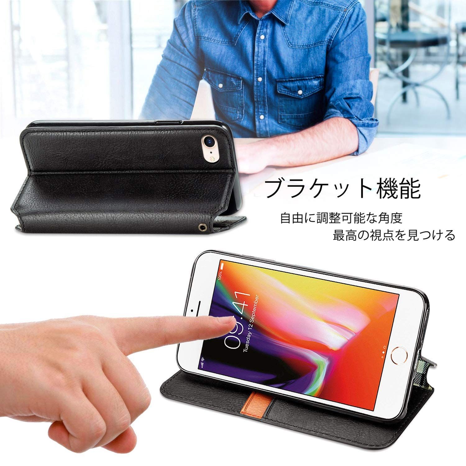 【モデル素材】に適用するiPhone SE 第3世代 (2022) / iPhone SE 第2世代 (2020) / iPhone8 / iPhone7。シェルは高品質のPUレザーで作られており,背面とディスプレイを保護します また,表面への浸透、汚れ、傷、ほこりも防ぎます。