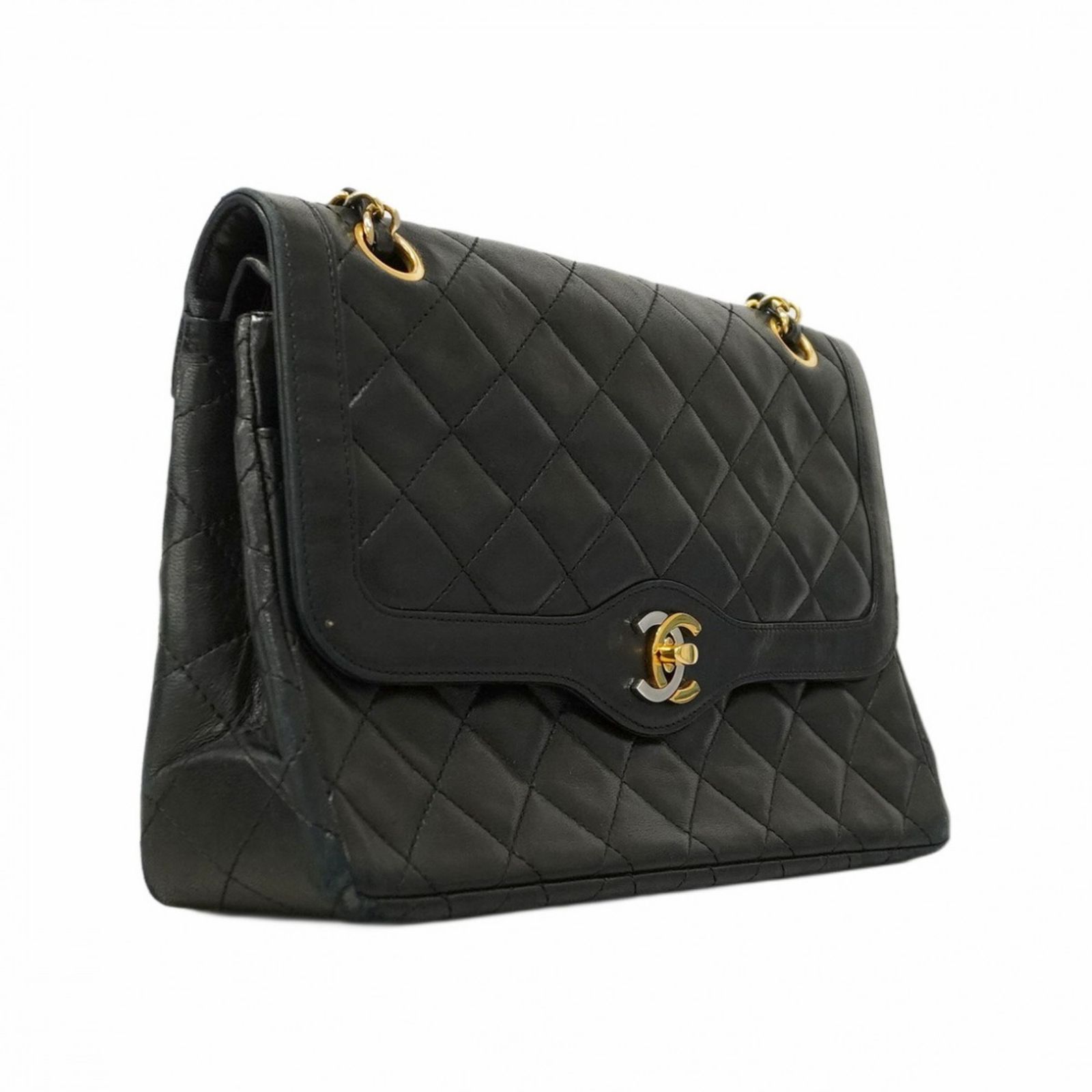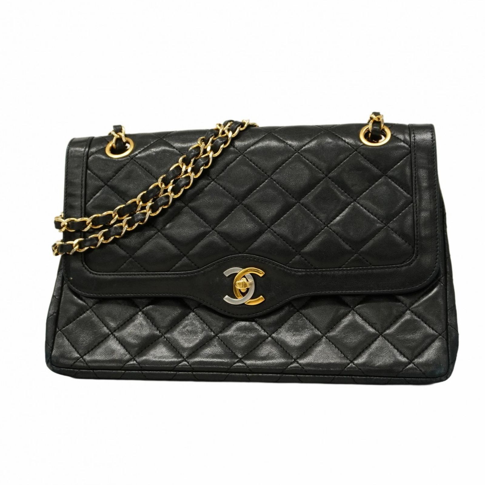 シャネル(Chanel) シャネル ショルダーバッグ マトラッセ パリ限定 Wフラップ Wチェーン ラムスキン ブラック ゴールド レディース