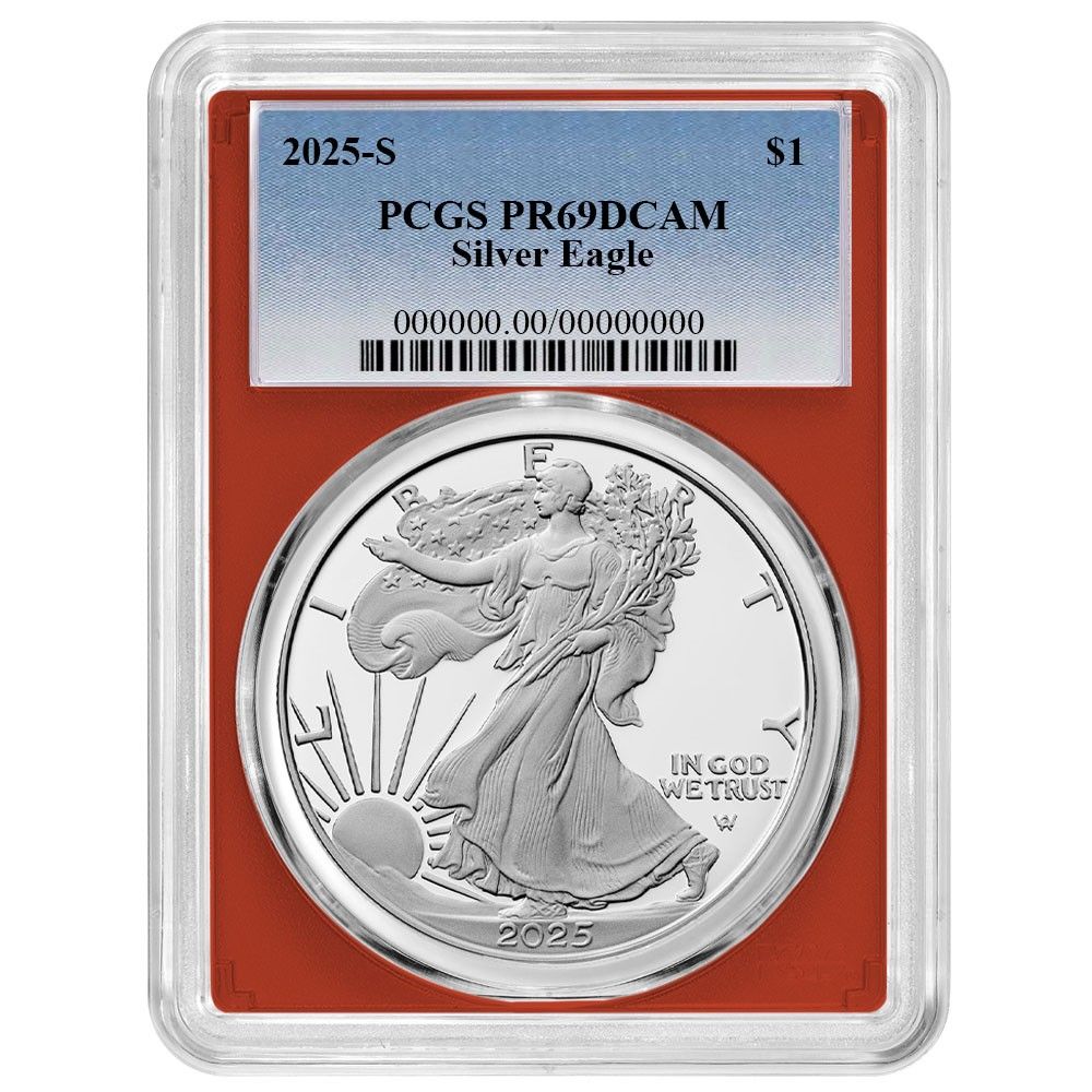 2025-S Proof $1 American Silver Eagle PCGS PR69DCAM Blue Label Red Frame