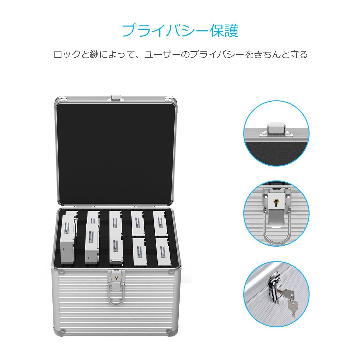【安全安心】鍵でボックスをロックことができ、ごユーザーのプライバシーをきちんと守ります。筐体はアルミ合金で製造され、堅固で耐久、耐衝撃性も抜群です。