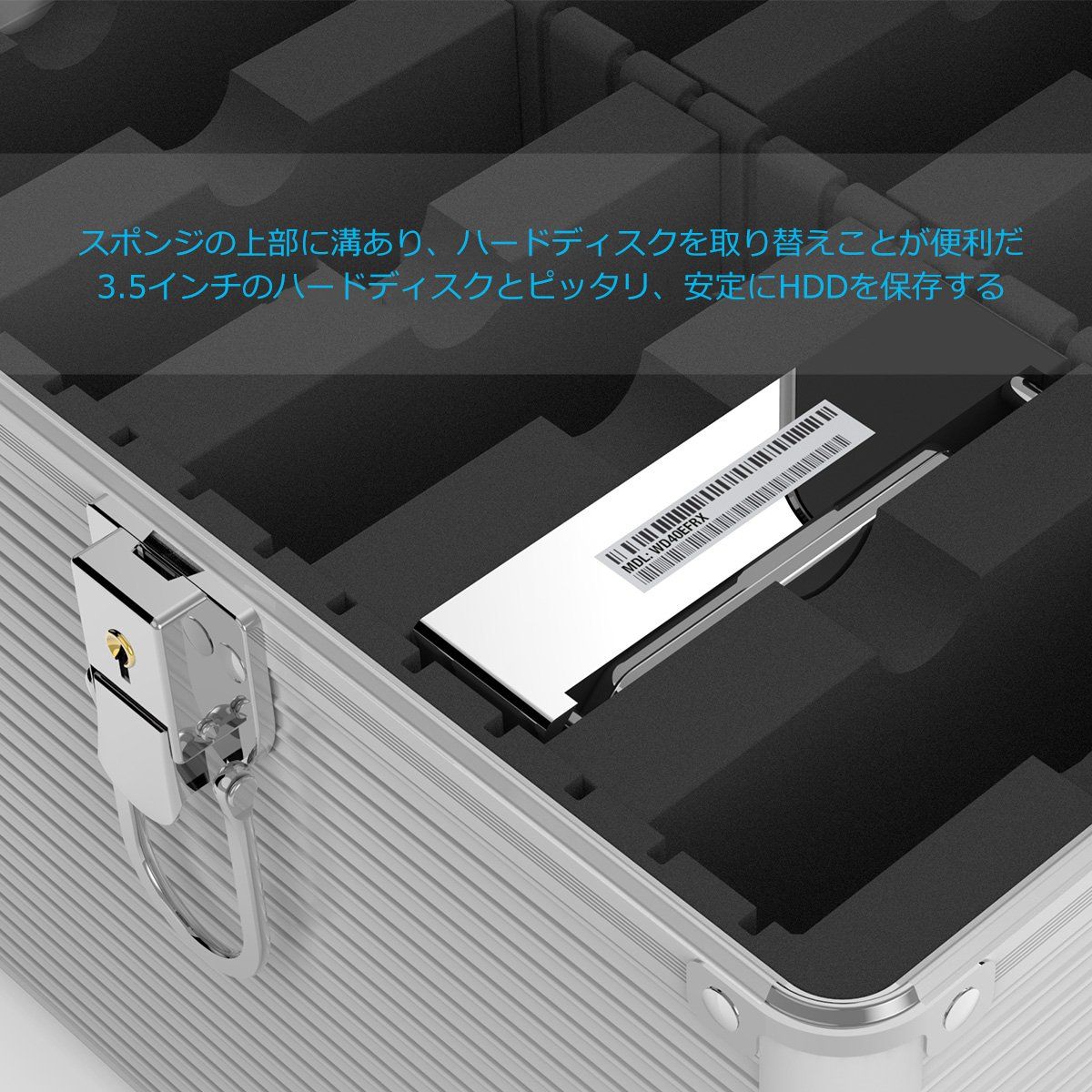 【使用便利】ハンドルがゴムで巻かれて、持ち運びに便利です。HDDの取り換えこと考慮し、スポンジの上部は特別な「U」形状作られ、簡単にHDDを換えします。