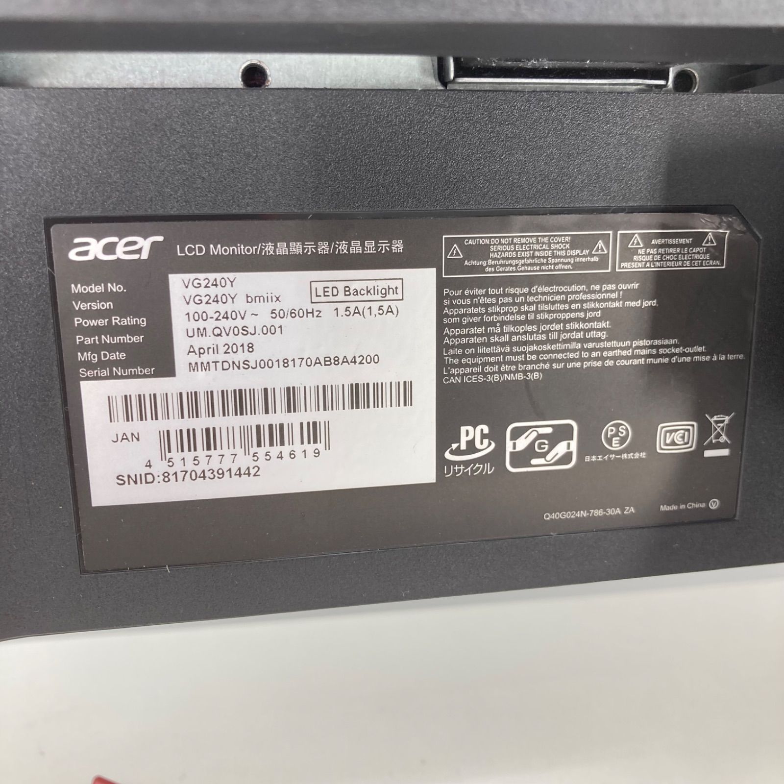 acer(エイサー)製 23.8インチ ゲーミングモニター VG240Y bmiiX です。IPSパネル搭載でフルHD表示に対応し、普段使いからゲームまで幅広く使えるモデルです。