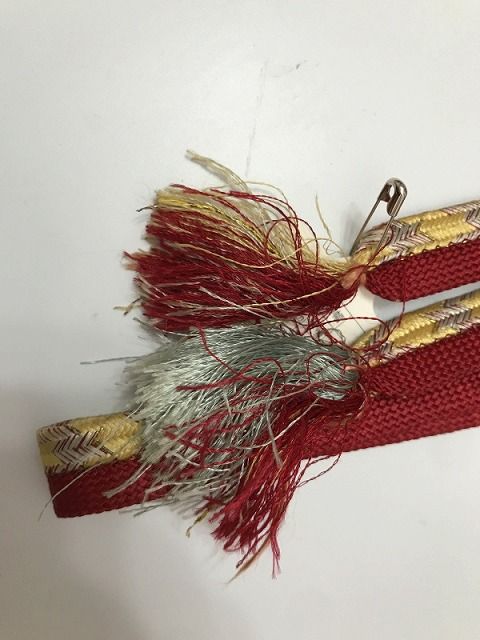 【中古】帯締め 正絹 渋赤地に矢羽風のアクセント